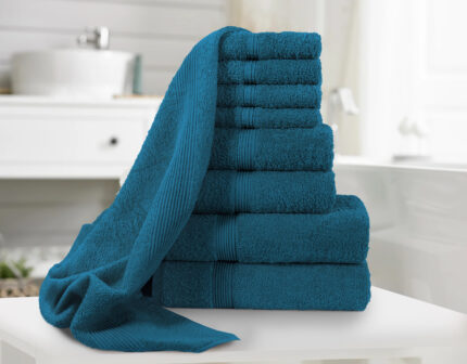 - Set of 8- Our economic set of towels contain: 2 bath towels measuring 69 x 137 CM each; 2 hand towels of 41 by 71 CM each; and 4 washcloths of 30 by 30 CM each Enjoy a spa like experience with our luxuriously soft and absorbent towel set.