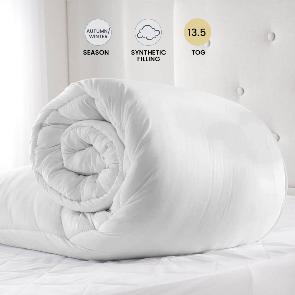 If you are living in an area with severe winters but with strong home insulation properties, then this tog duvet should be your prior choice. This soft, fluffy 13.5 tog duvet is bursting with a premium quality hollow fibre filling within the pure quality polyester fabric that’s ideal for colder winter nights. Featuring a smooth, warm and finest finishing earns durability and the ultimate snug feel, this man-made highest quality duvet will keep you warm and snug. Make your purchase for this duvet tog today and spend your nights in luxury cosiness. This duvet tog is available for all standard size beds including single, double, king and super king.