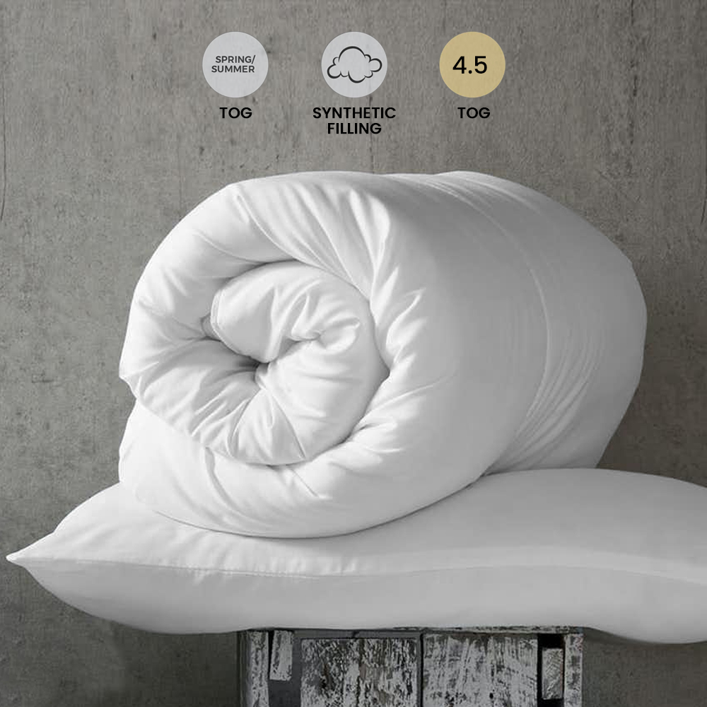 The 4.5 tog duvet is specially designed to keep you cool and comfortable during the summer months, allowing you to relax and enjoy a peaceful night’s sleep. 4.5 tog duvet is cooling duvet is made from soft materials with a soft fibre filling, providing a cosy feel throughout the night. It helps prevent overheating, ensuring you stay at a comfortable temperature while you sleep. The soft, breathable hollow fibre filling offers an ultra-soft touch, even on sensitive skin. Crafted from premium fibres, our 4.5 duvet is highly durable and breathable.