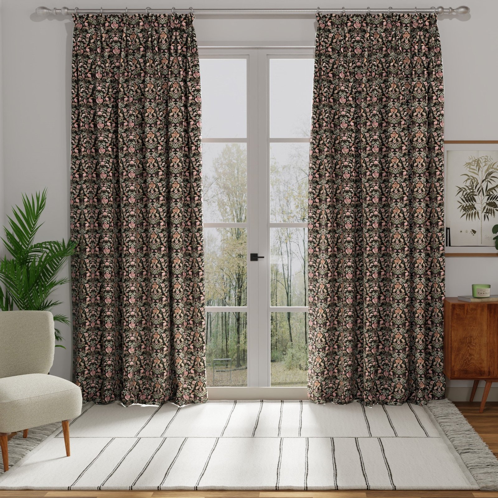 This wonderful 100% cotton material can now be ordered as made to measure curtains, perfect for most windows in the home. Creating a soft and warming look in your window treatment of choice.