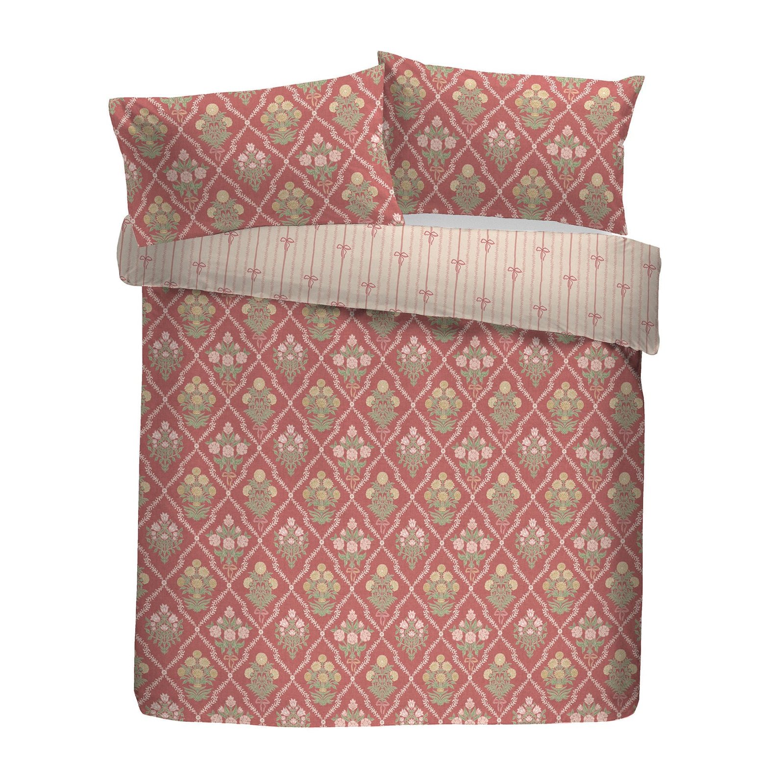 Experience the refined elegance of the Appletree Aurelia Duvet Cover Set, combining timeless romance with subtle sophistication. Featuring a delicate floral print enhanced by ruffle detailing on the pillowcases and a striped reverse decorated with printed bows, this set is both charming and distinctive. Made from luxuriously soft 200 thread count cotton and finished with a discreet button closure, it offers exceptional comfort and a polished look for your bedroom.