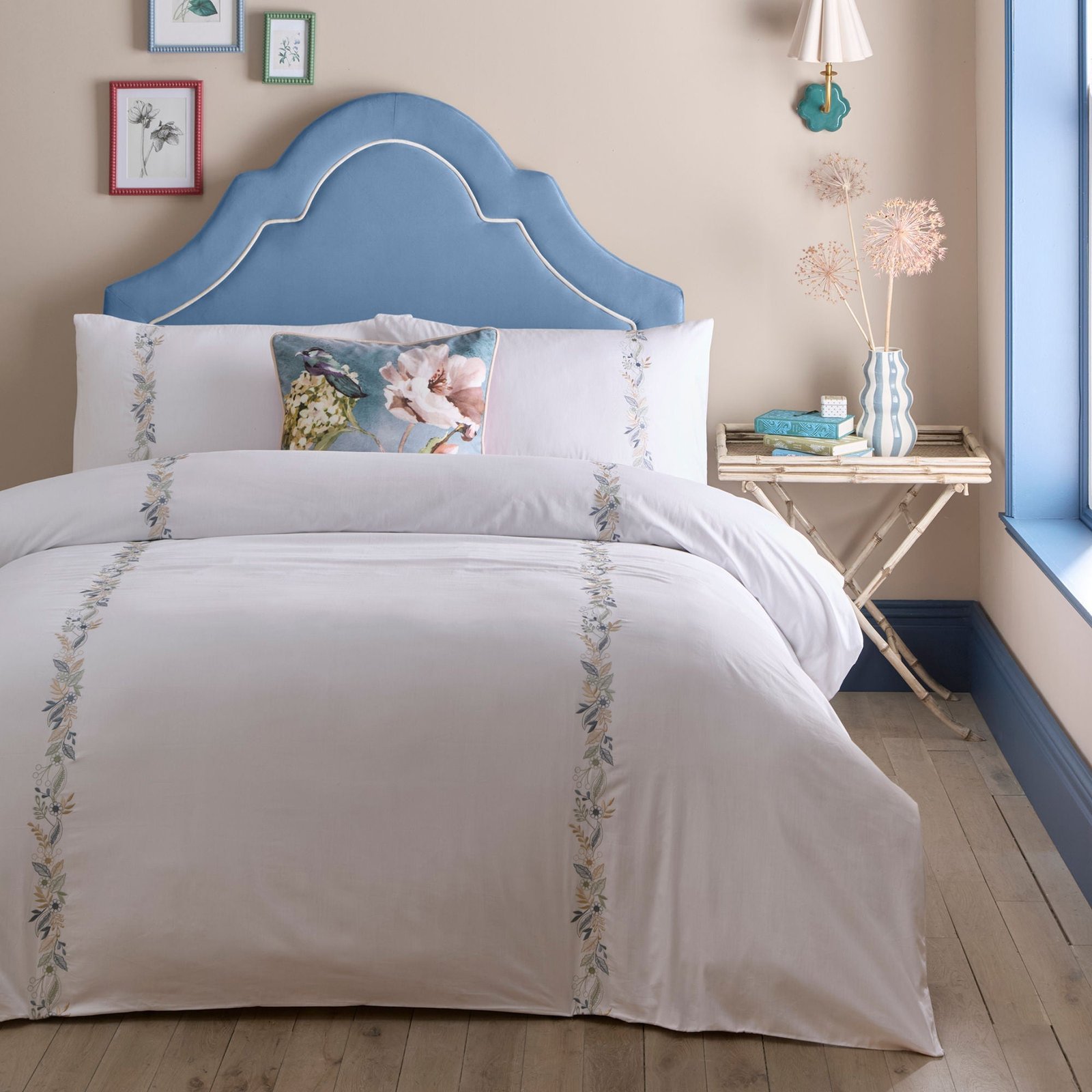 Experience the lavish comfort of the Appletree Julianna Embroidered Duvet Cover Set. Each petal of the elegant floral embroidery is carefully crafted on a 100% cotton base with a 200 thread count. Let this masterfully made set elevate your space into a refined and sophisticated haven, embracing the timeless elegance of British design.