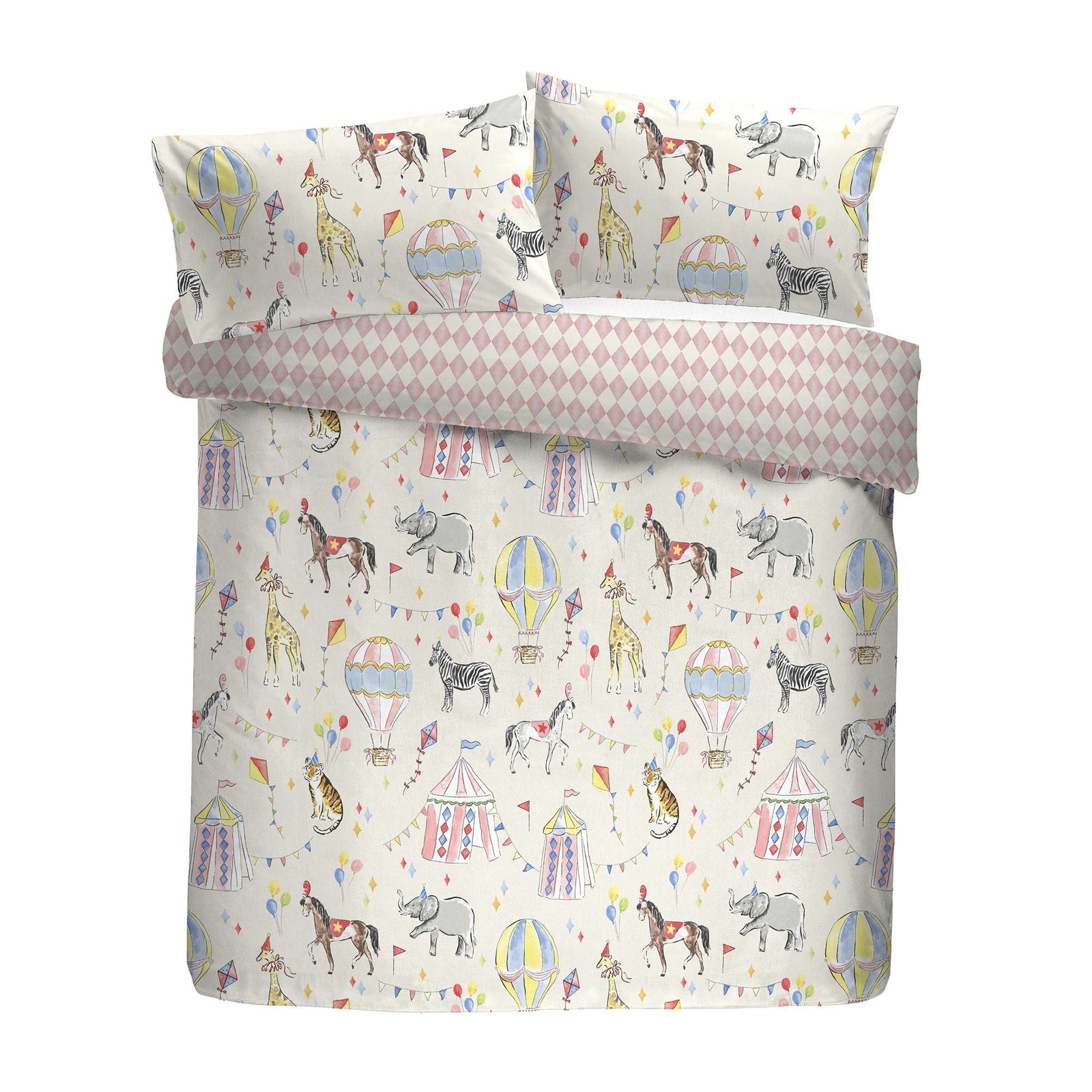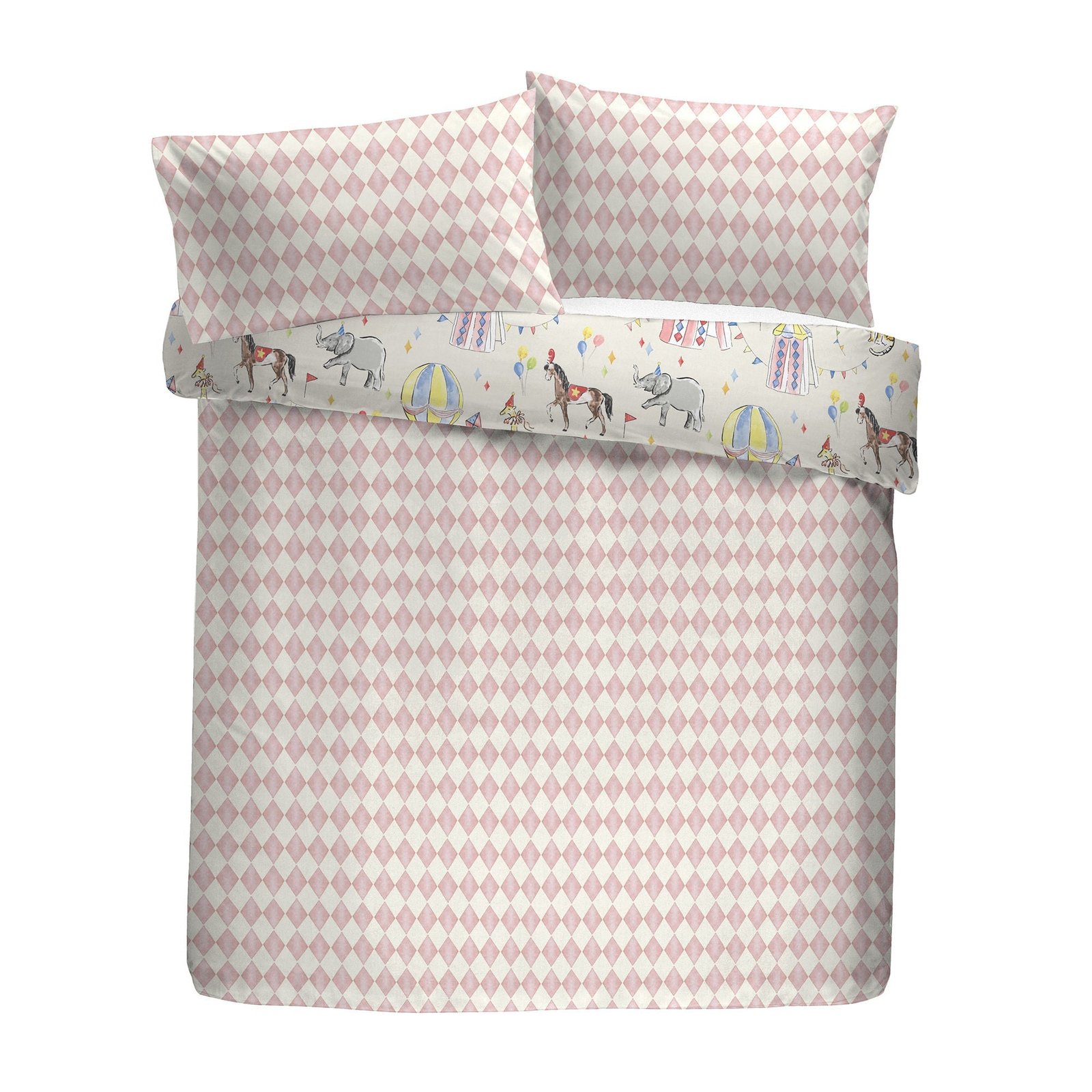 Experience the enchanting Bedlam Circus Time Duvet Cover Set, featuring a delightful circus-themed design and a subtle pastel Harlequin pattern on the reverse. Crafted from easy-care polyester, this bedding ensures lasting comfort with minimal maintenance. Elevate your bedroom décor with this unique set that brings a touch of whimsy and sophistication to every night’s rest.
