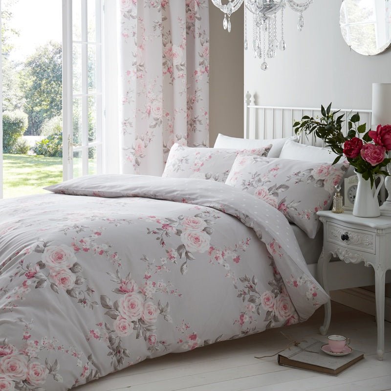 A lovely classic colour pairing, pale greys and soft millennial pinks bring a lightness and freshness to the modern bedroom. This design is from the Catherine Lansfield collection which is renowned for style and quality as well as being designed and developed in Great Britain.