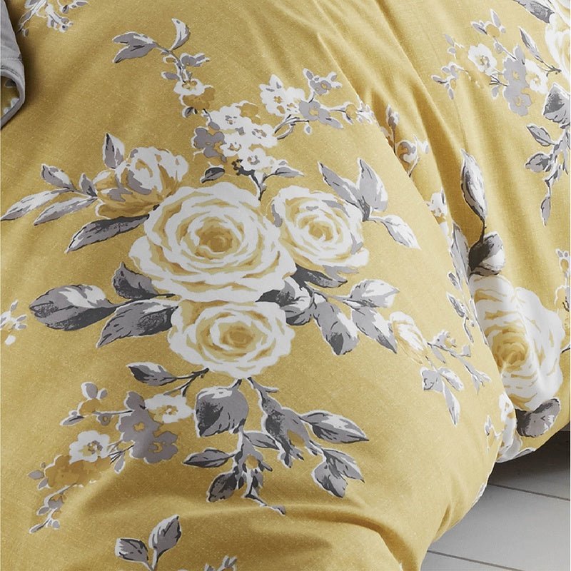 This fabulous on-trend yellow ochre and grey combination lifts the spirits making a Canterbury ochre bedroom a sunny inviting space. This design is from the Catherine Lansfield collection which is renowned for style and quality as well as being designed and developed in Great Britain.