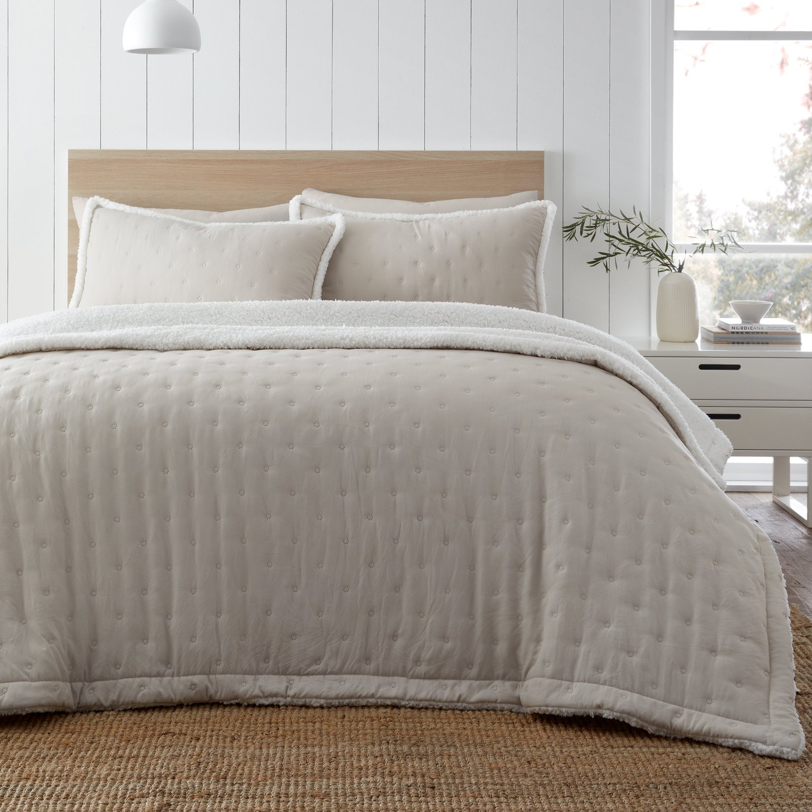 Catherine Lansfield Cosi Nori Sherpa Bedspread 220cm x 230cm Cream