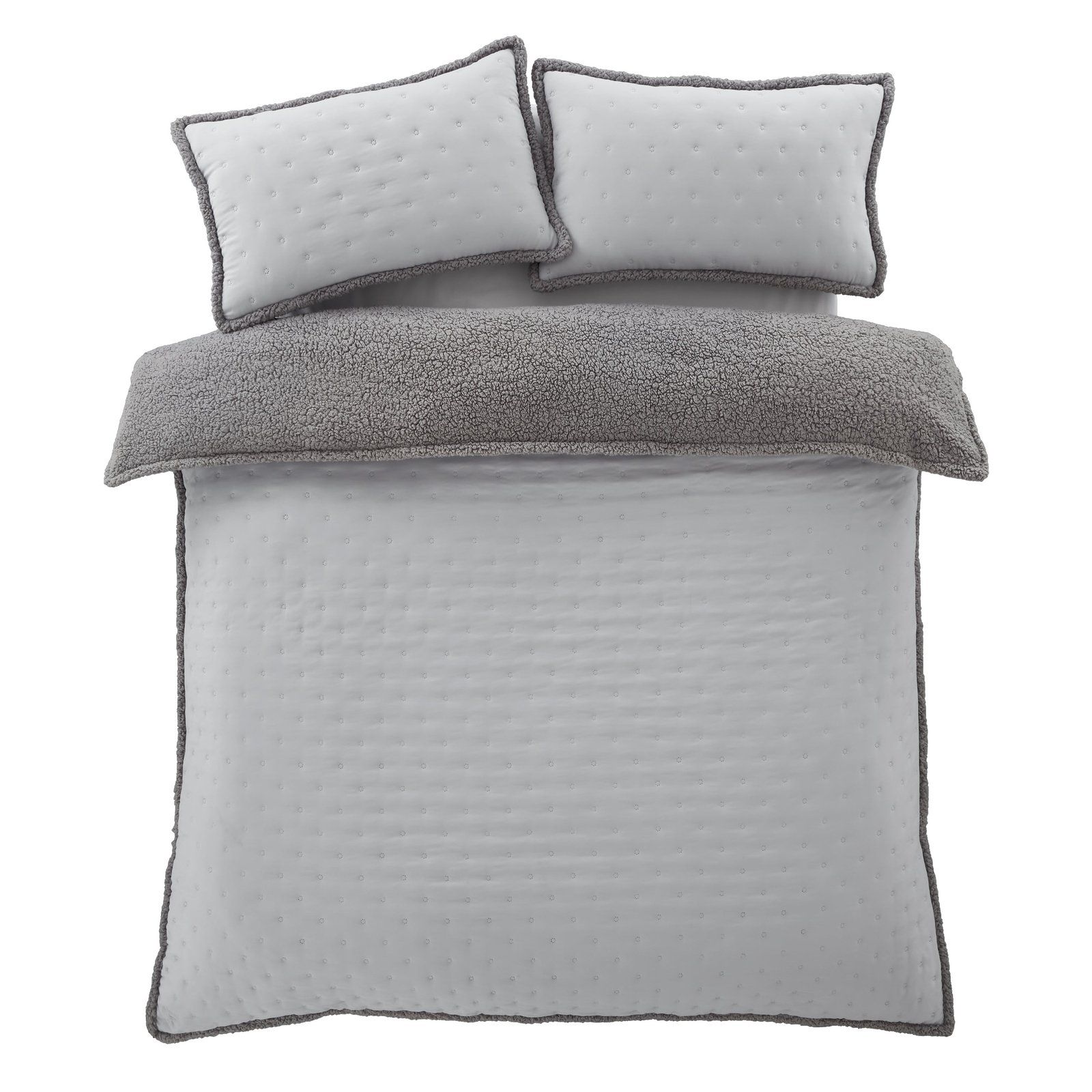 Catherine Lansfield Cosi Nori Sherpa Duvet Cover Bedding Set Silver