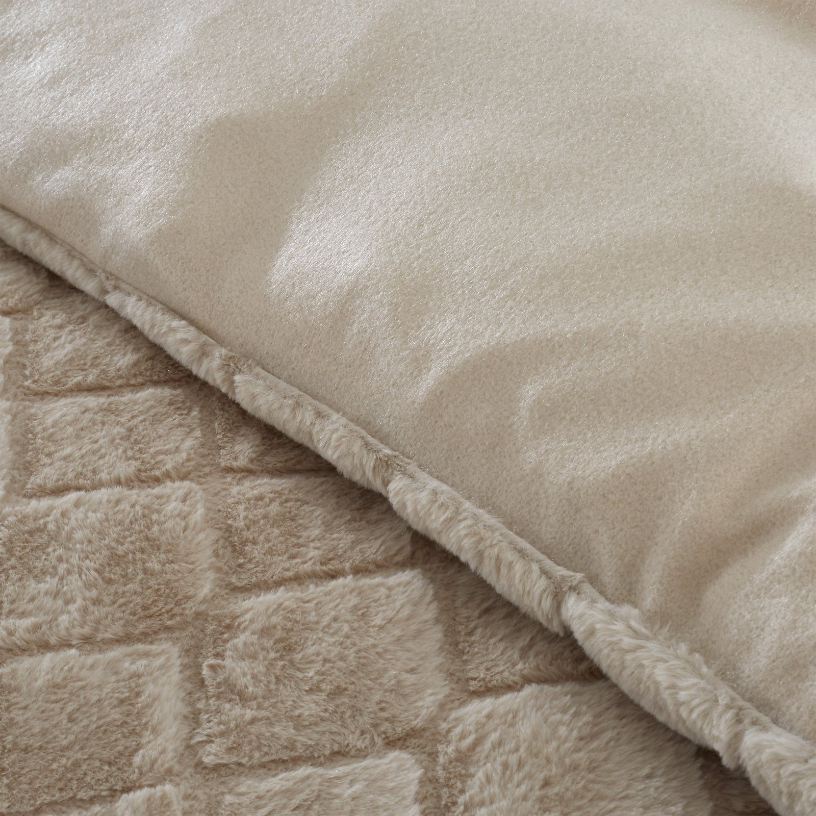 Catherine Lansfield Cosy Diamond Faux Fur Duvet Cover Bedding Set Natural