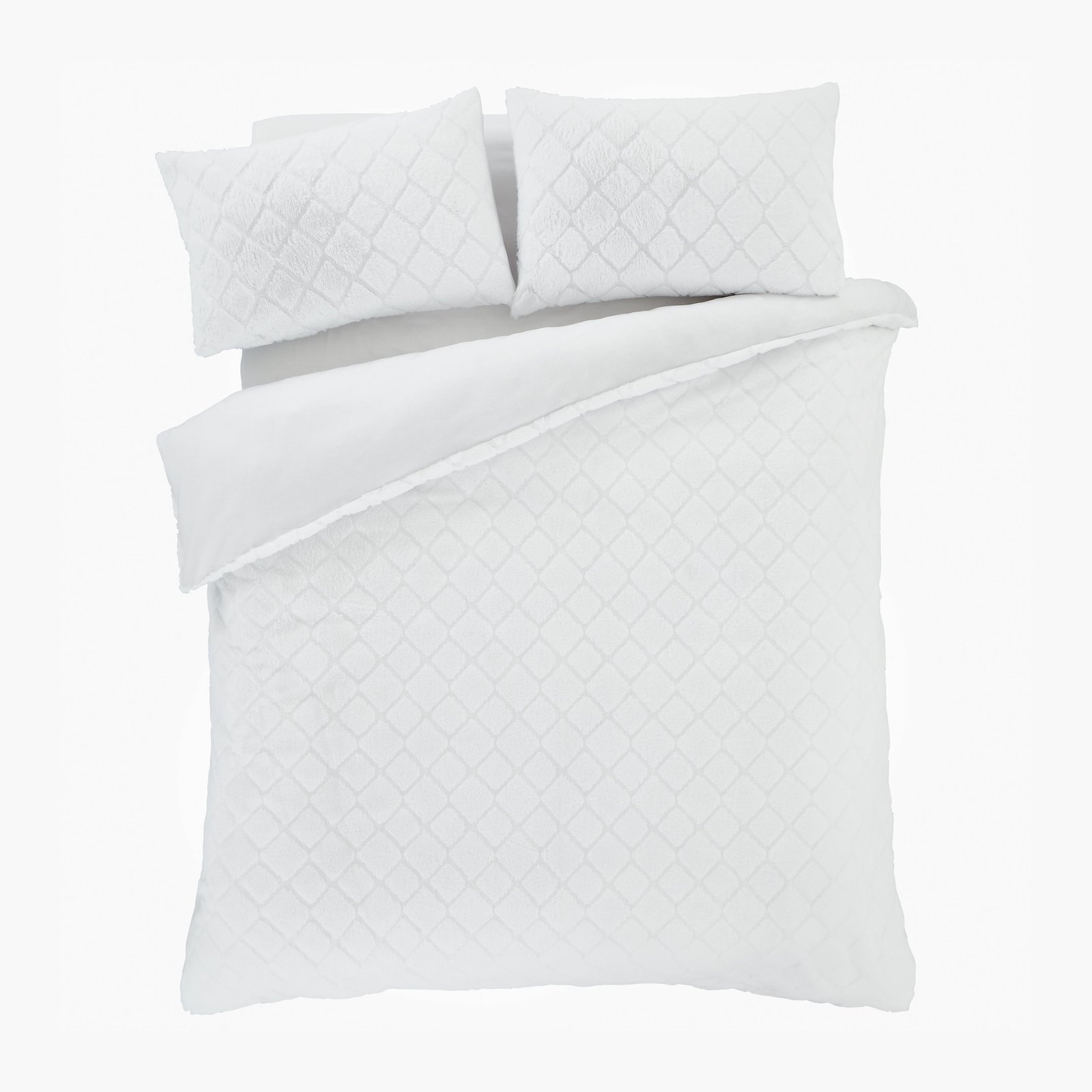 Indulge in luxurious comfort with our soft and cosy bedlinen featuring carved diamond shapes on a faux fur base. The diamond geometric shapes create a beautiful and sophisticated texture, while the faux fur material provides ultimate warmth and comfort.