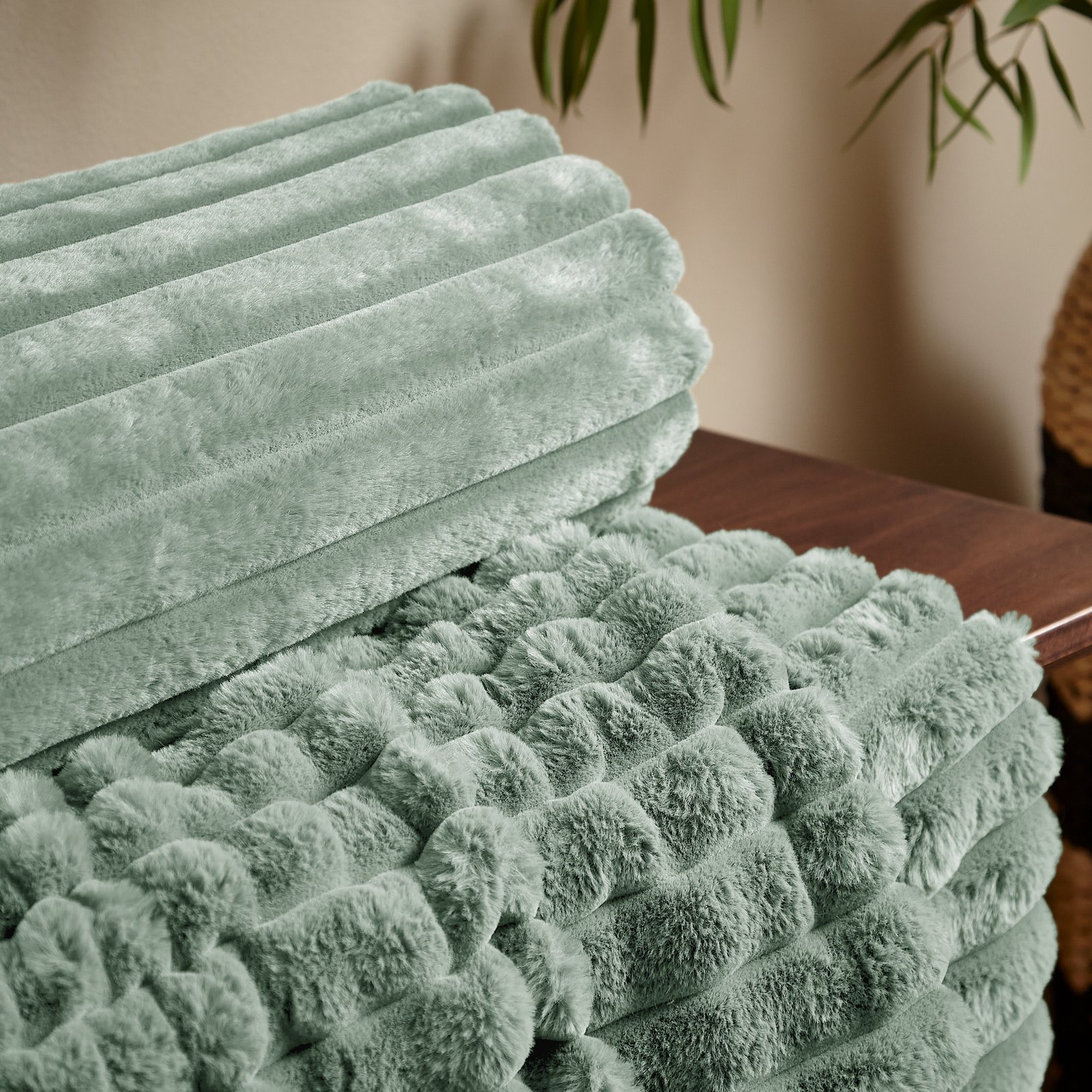 Catherine Lansfield Cosy Ribbed Soft Touch Velvet 130cm x 170cm Throw Green