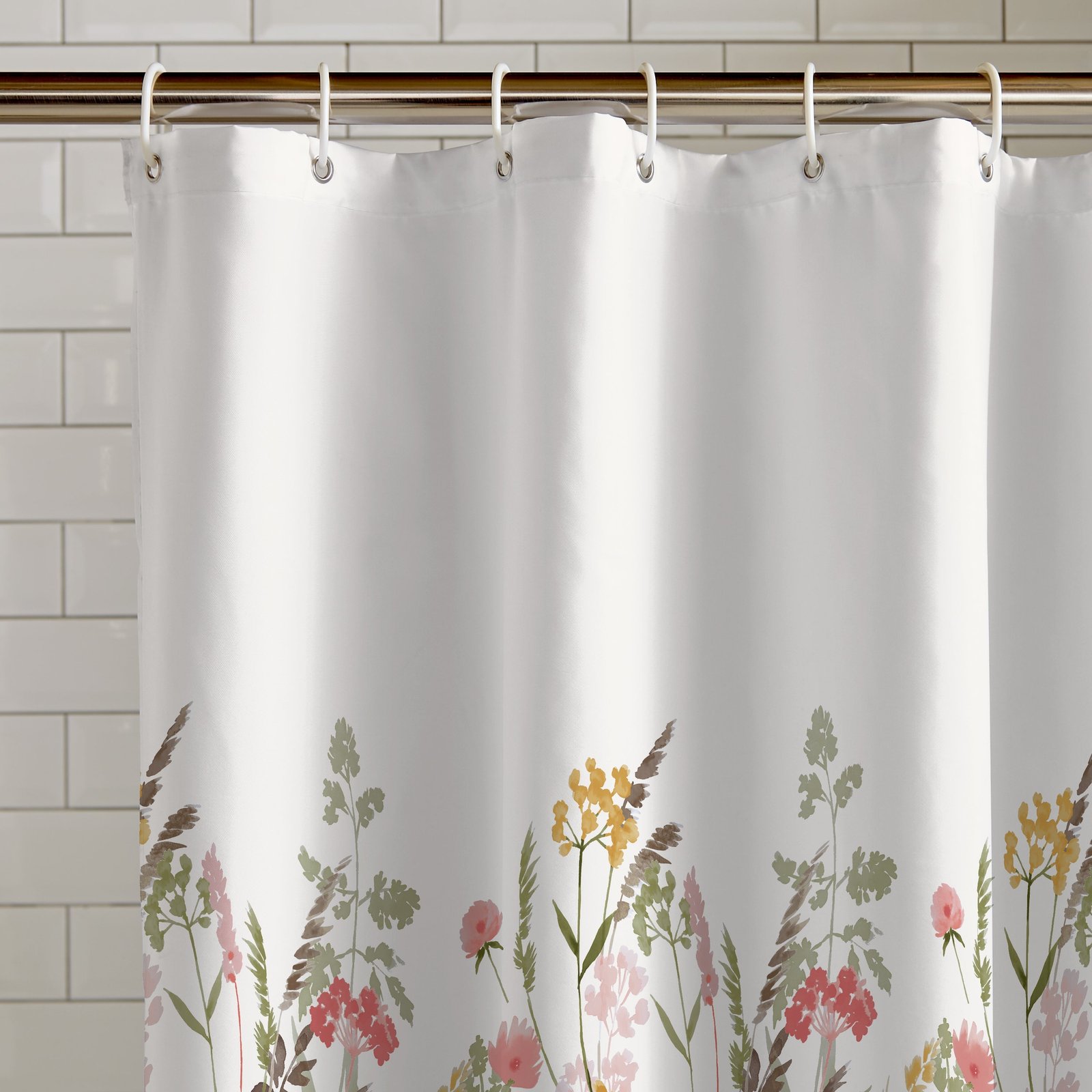 Bring a natural charm to your bathroom with delicate watercolour wildflowers displayed against a clean white background. This shower curtain combines vibrant floral design with practical features like durable fabric, water-resistant coating, and an easy-to-install eyelet header. Enhance your space with a blend of style and function. Please note: hooks are not included.Â