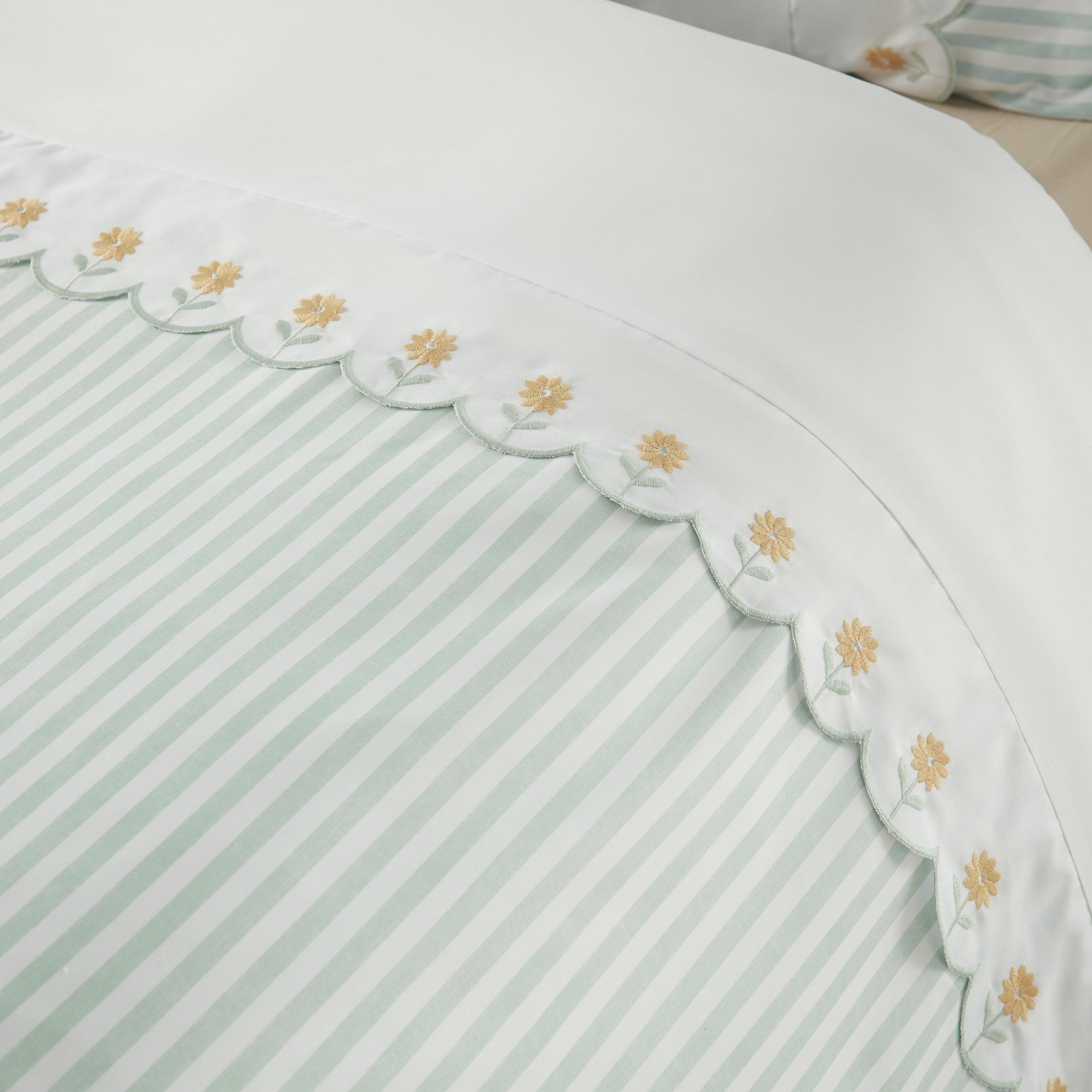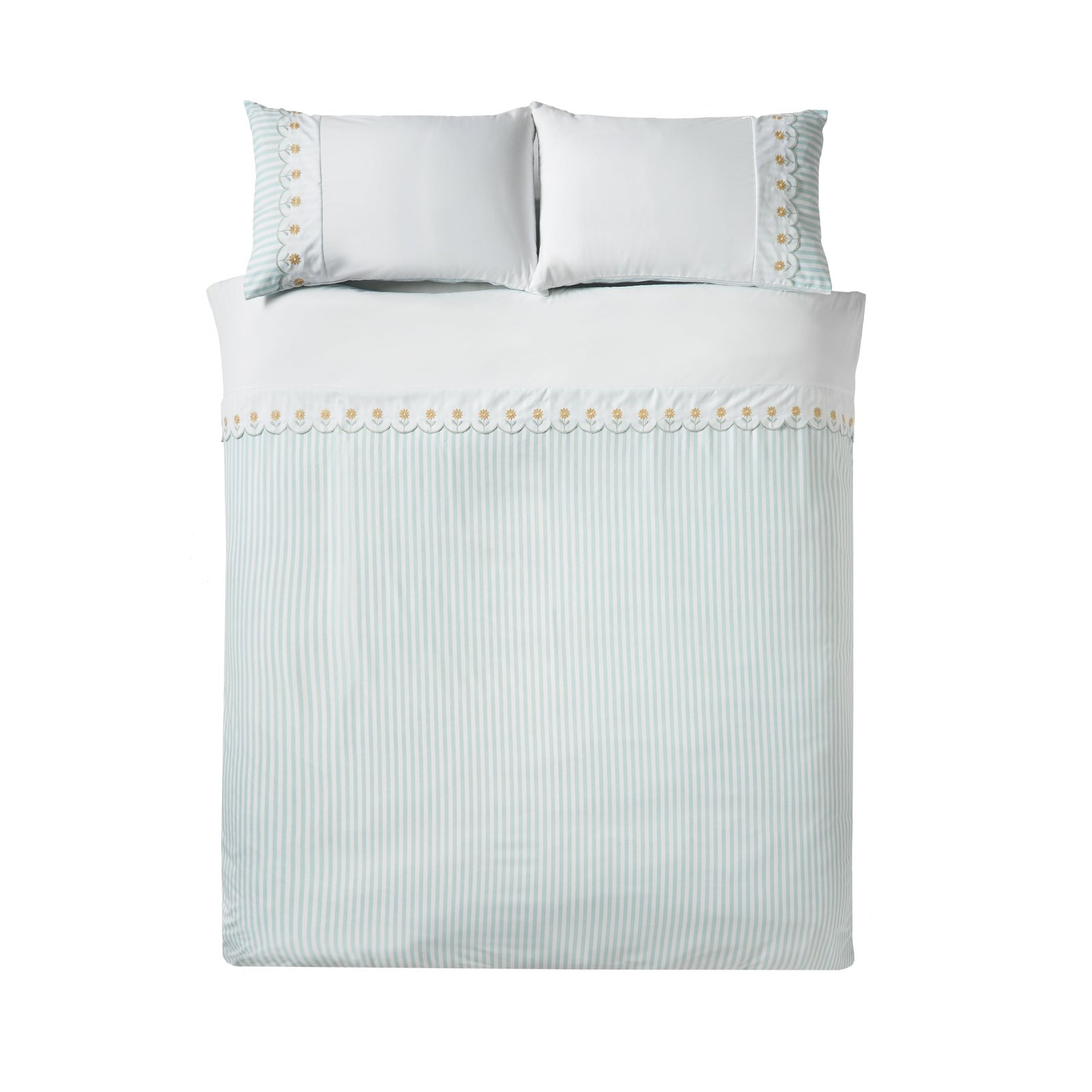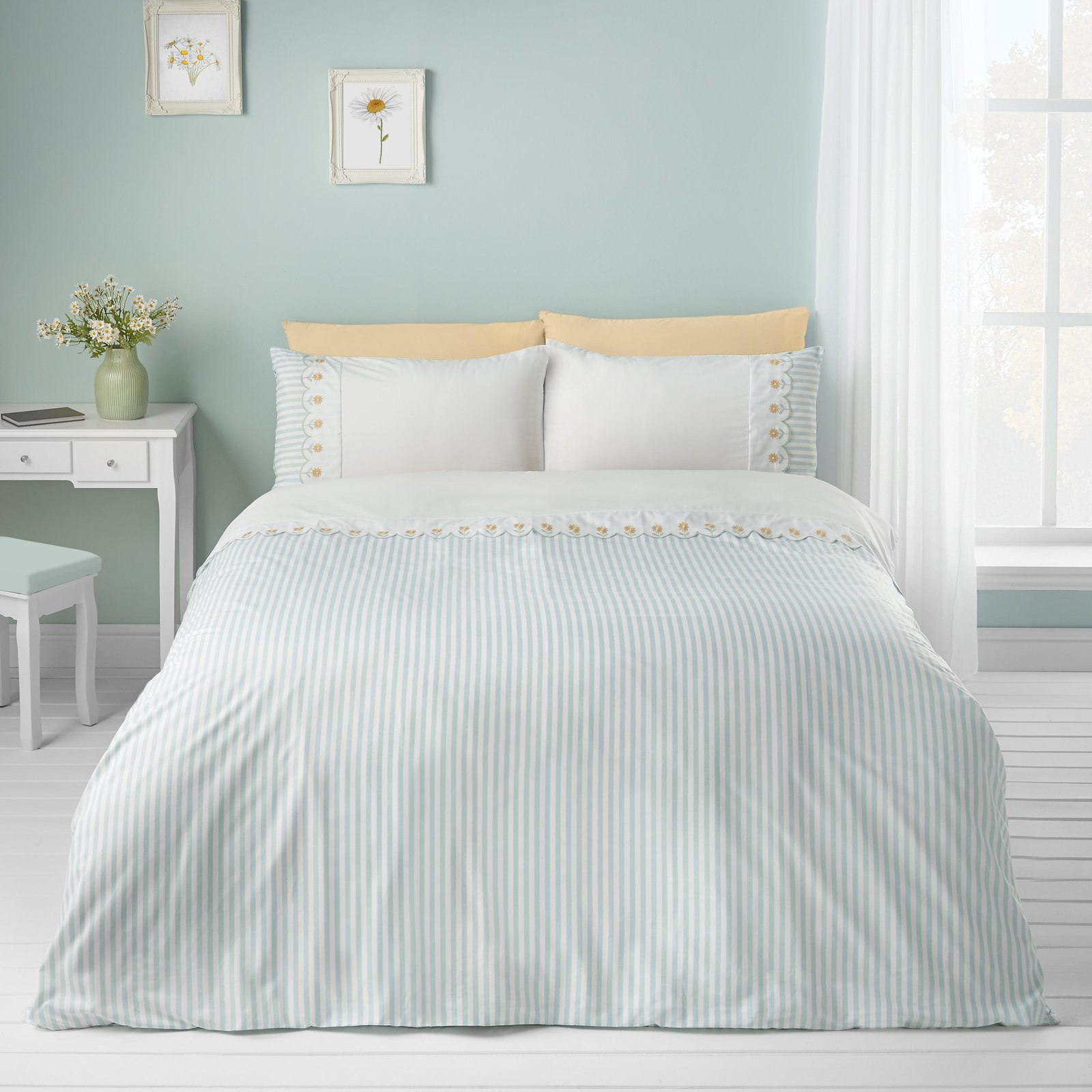 Catherine Lansfield Embroidered Daisy Duvet Cover Bedding Set Sage Green