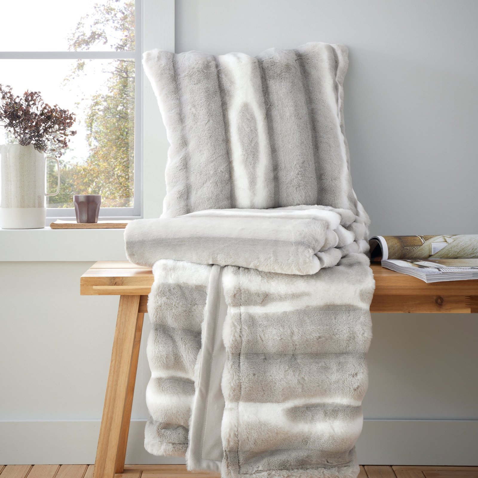 Catherine Lansfield Flint 130cm x 170cm Faux Fur Throw Silver