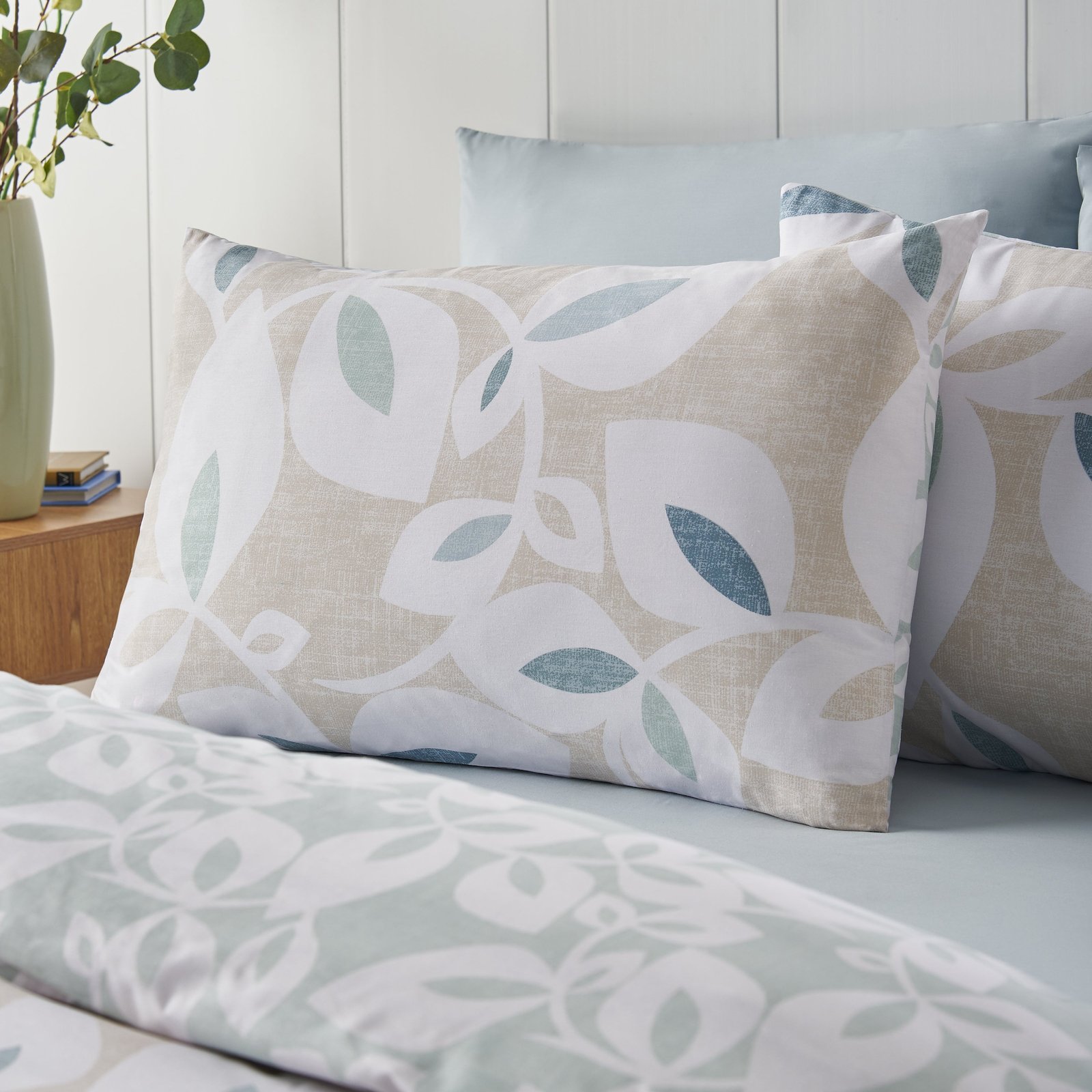 Catherine Lansfield Inga Leaf Duvet Cover Bedding Set Natural