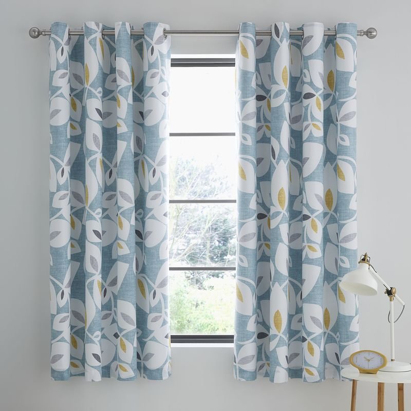 The contemporary collage design features a minimalist leaf pattern in gentle teal, accented by hints of ochre and grey, infusing your space with a calm, Scandinavian vibe. Crafted from a blend of polyester and soft cotton, these curtains offer durable comfort suitable for daily wear.