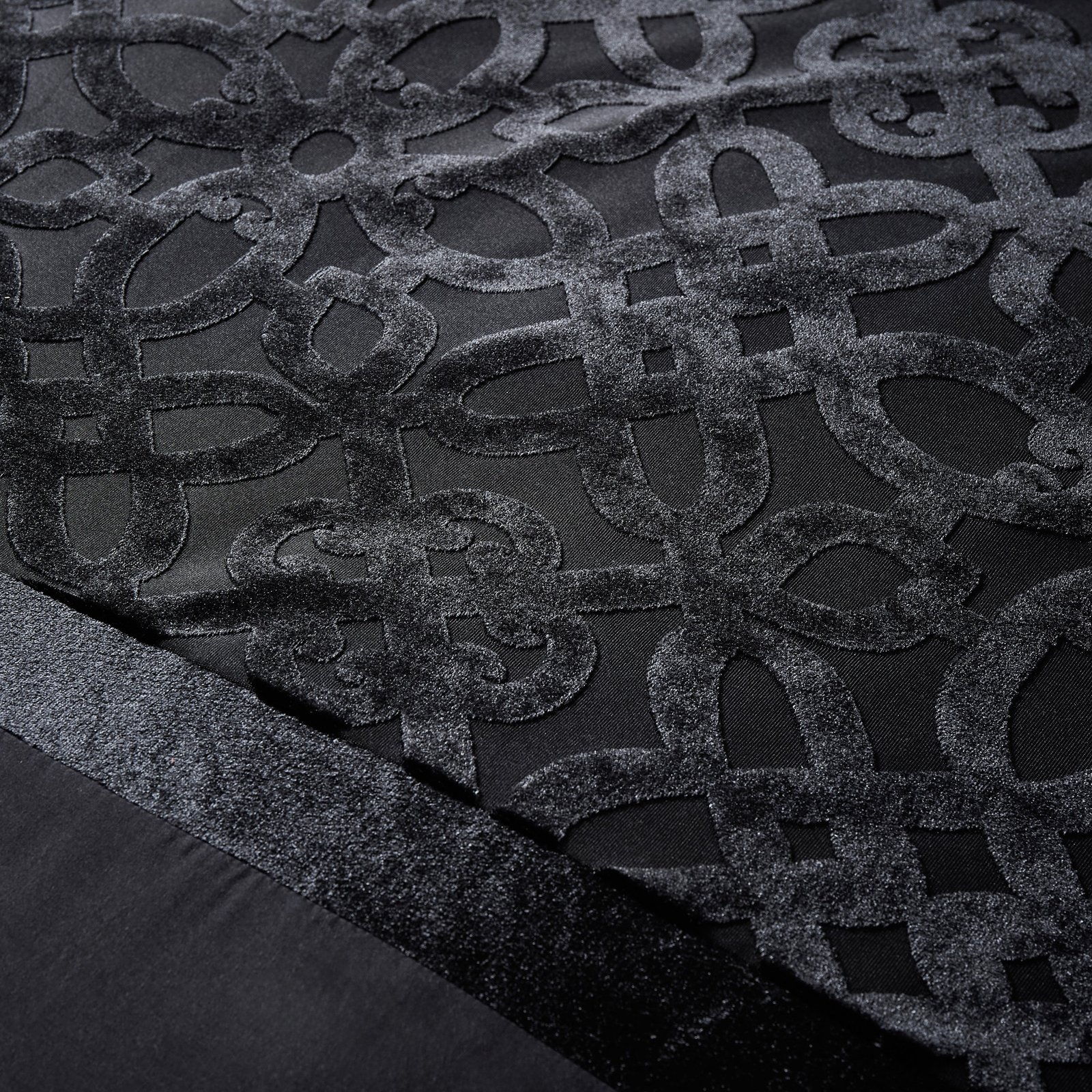 Crafted from sumptuous devore velvet, this Catherine Lansfield bedding set showcases an intricate lattice pattern that adds sophisticated visual interest to your bedroom. The fabric’s luxurious texture combines tactile softness with refined elegance, creating a statement piece that balances contemporary design with timeless appeal. Designed and developed in Great Britain, this collection reflects Catherine Lansfield’s commitment to quality craftsmanship and distinctive styling. The versatile black tone pairs seamlessly with complementary layering pieces, allowing you to build a cohesive and curated bedroom aesthetic with ease.