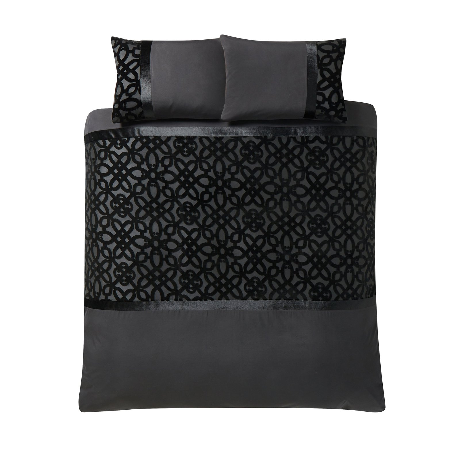 Catherine Lansfield Lattice Cut Velvet Duvet Cover Bedding Set Black