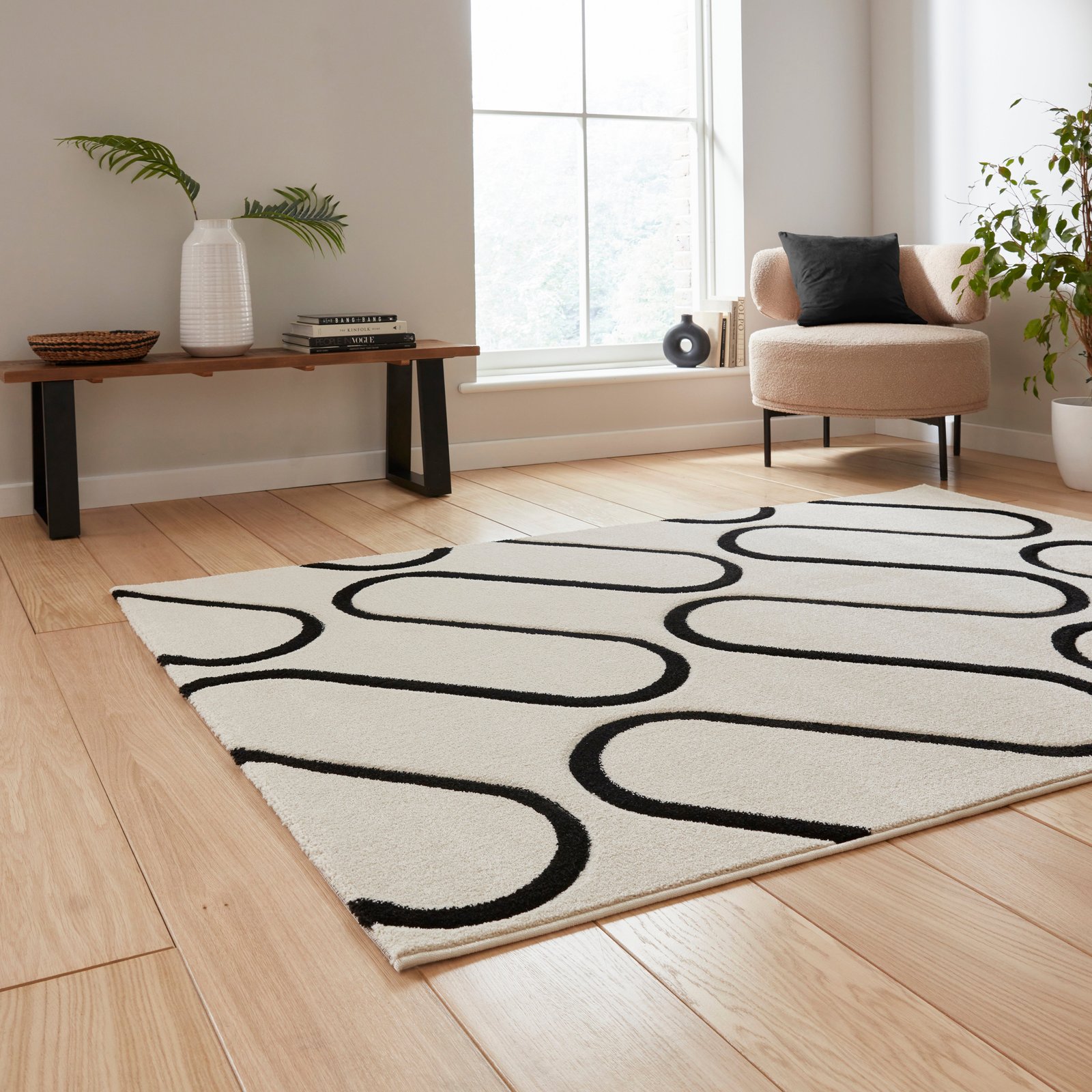 Catherine Lansfield Linear Curve Modern Geometric Rug White Black