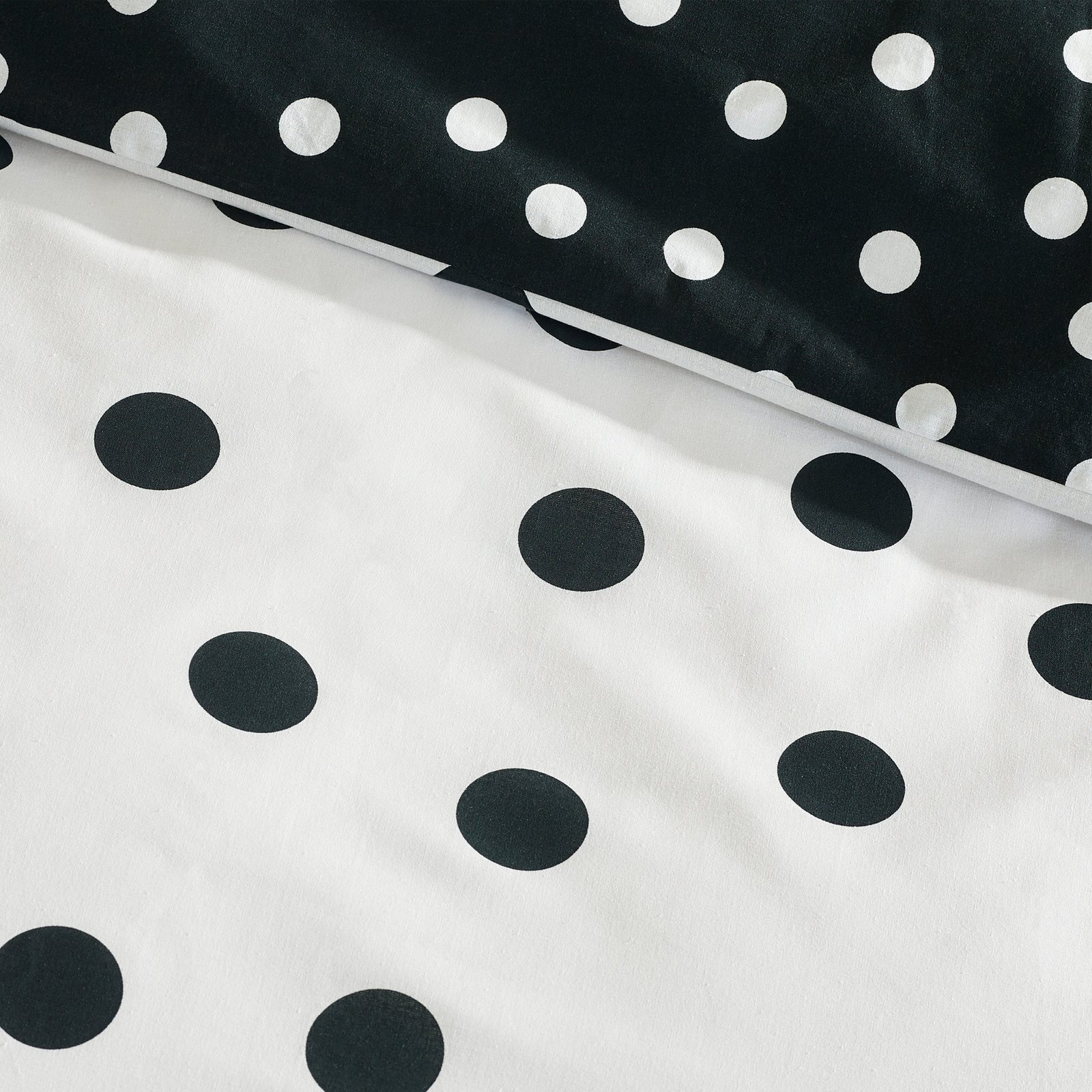 Transform your bedroom with this striking Catherine Lansfield duvet cover set, featuring a timeless polka dot pattern in classic black and white. The reversible design showcases contrasting dot arrangements on each side, providing flexible styling options to suit your mood. Crafted from a thoughtfully blended composition of recycled polyester and cotton, this set delivers both durability and comfort for daily use. As a British-designed collection, Catherine Lansfield maintains rigorous standards for quality and sustainability, with certification from MADE IN GREEN by OEKO-TEX® ensuring responsible manufacturing practices and safety standards throughout production.