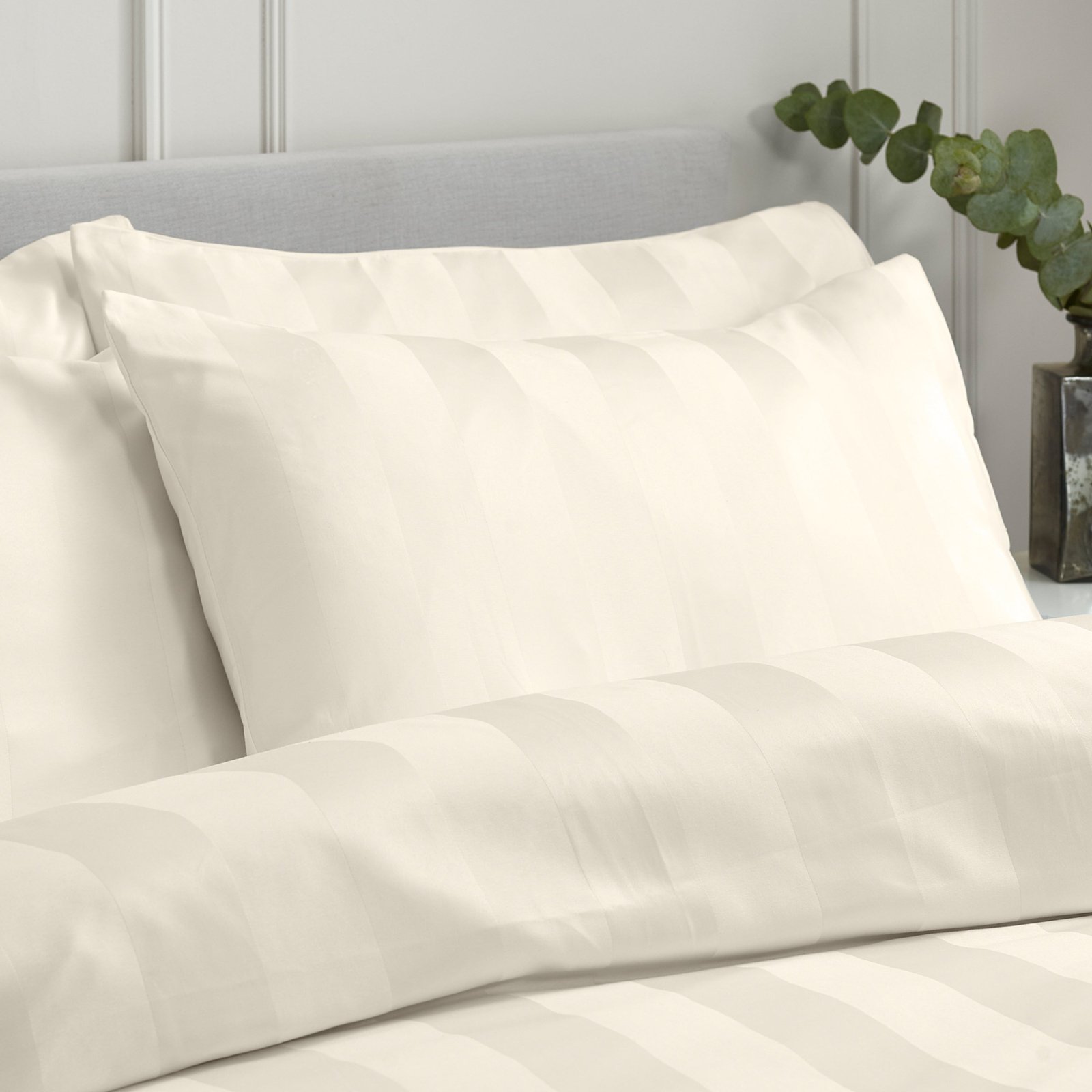 Transform your bedroom with this refined bedding collection from Catherine Lansfield, featuring an understated satin stripe pattern in cream. The luxuriously soft fabric delivers a smooth, silken texture that promotes restful sleep whilst maintaining its sophisticated aesthetic. This expertly crafted set combines timeless design with practical comfort, ideal for discerning customers seeking both elegance and quality. Manufactured to rigorous standards, including OEKO-TEX® certification, ensuring safety and sustainability. A British-designed piece that epitomises understated luxury and enduring style.