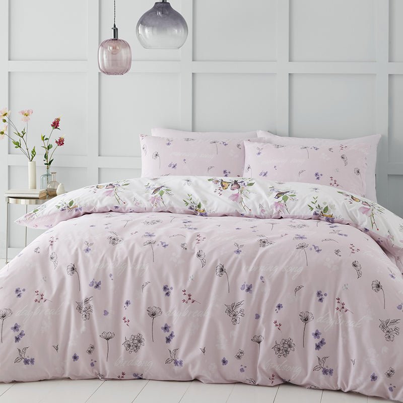 Catherine Lansfield Songbird Duvet Cover Bedding Set Pink