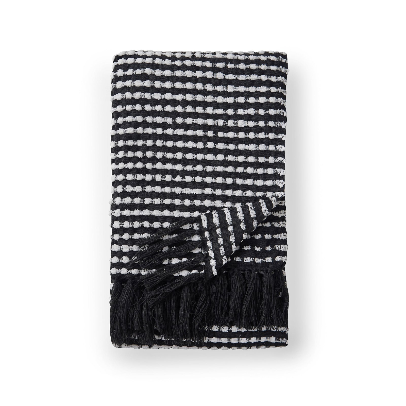 Catherine Lansfield Stab Stitch 125cm x 150cm Tassel Throw Black