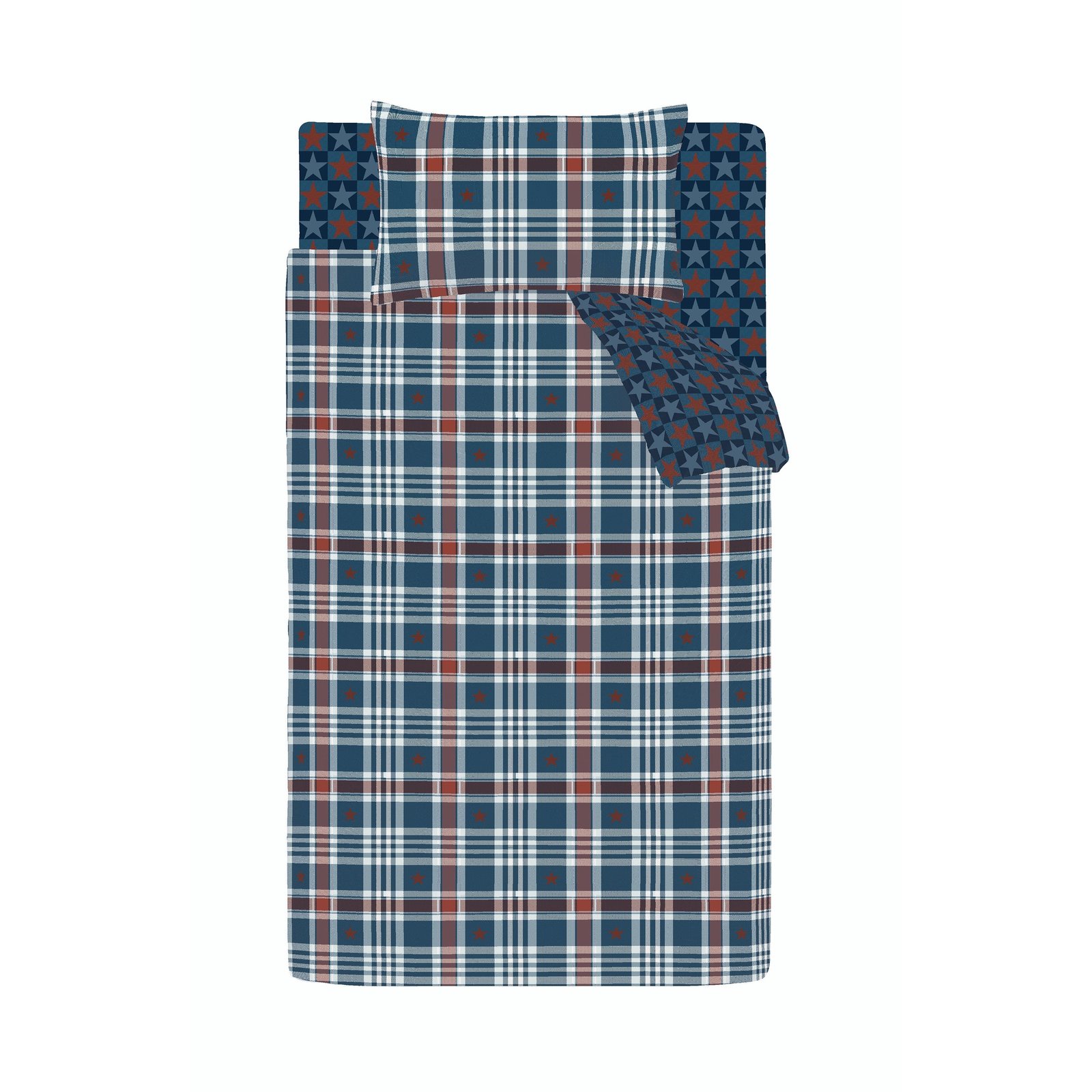 Catherine Lansfield Stars And Check Childrens Bedding Blue