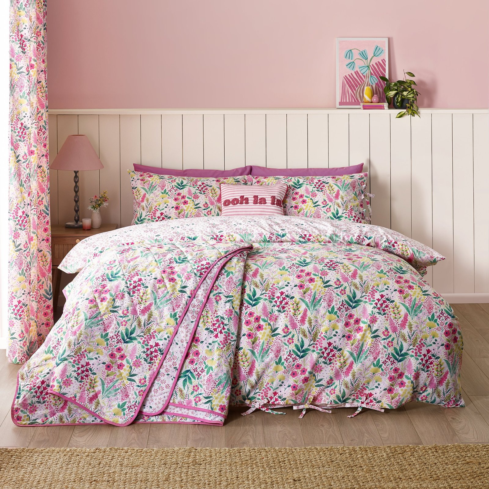 Catherine Lansfield Tilly Floral Reversible Duvet Cover Bedding Set Pink