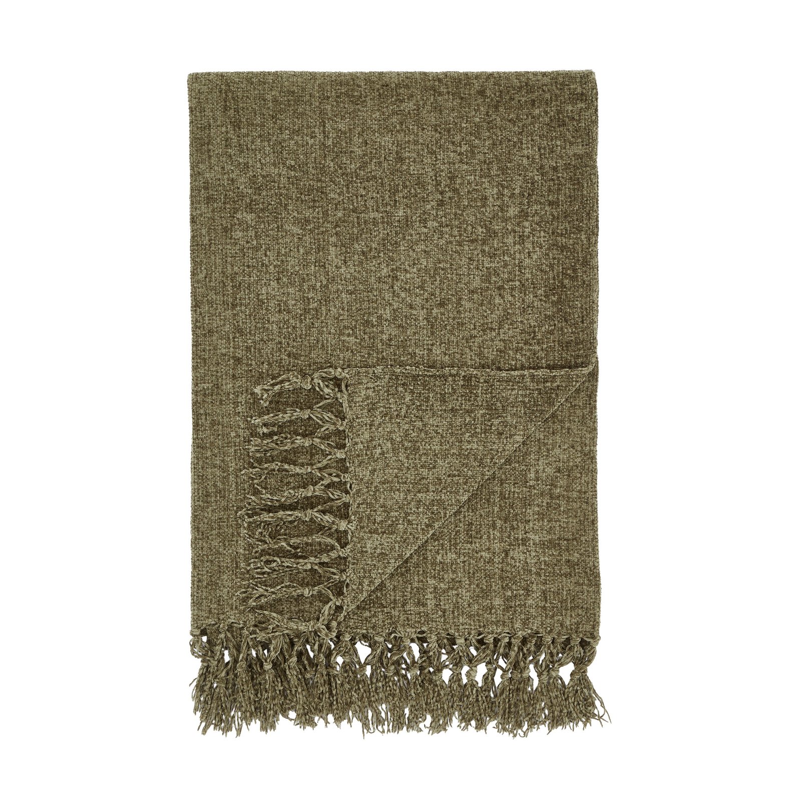 Catherine Lansfield Wilson Plain Chenille 130cm x 170cm Throw Olive