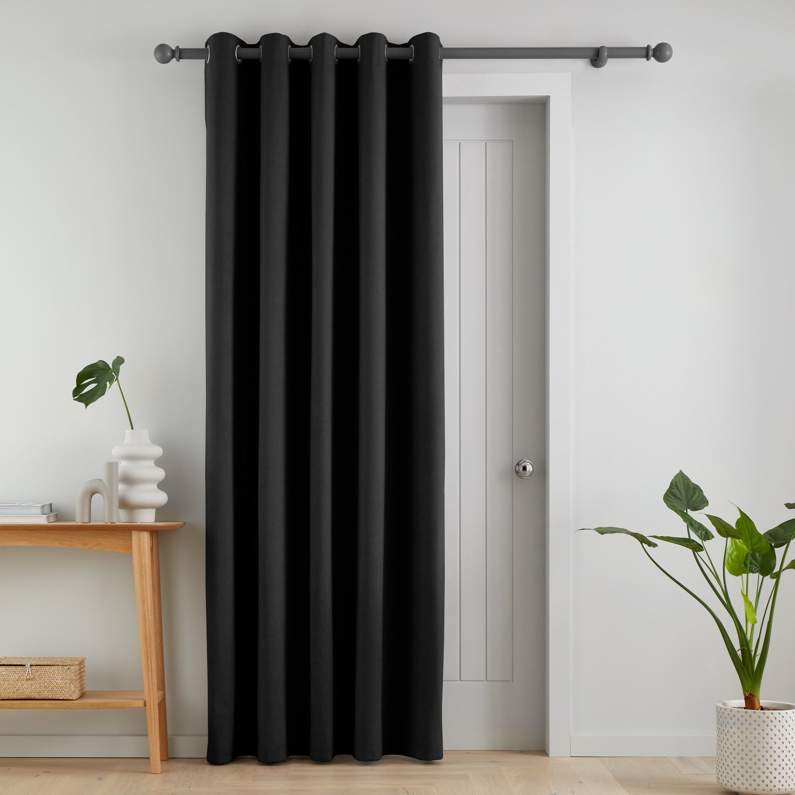 Catherine Lansfield Wilson Velvet Thermal Ready Made Eyelet Door Curtain Black