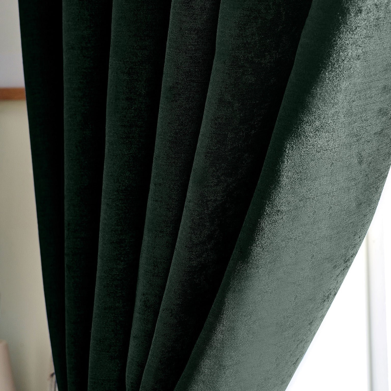 These sophisticated green chenille curtains feature a triple-woven construction engineered for exceptional light exclusion, making them particularly suited to bedrooms, nurseries, and home cinemas. The luxurious chenille weave delivers both visual richness and tactile appeal, whilst the integrated blackout lining works to regulate room temperature and reduce external noise. Pre-fitted with eyelets for straightforward installation, they provide a contemporary aesthetic without compromising on performance. An investment in both comfort and refined interior design.