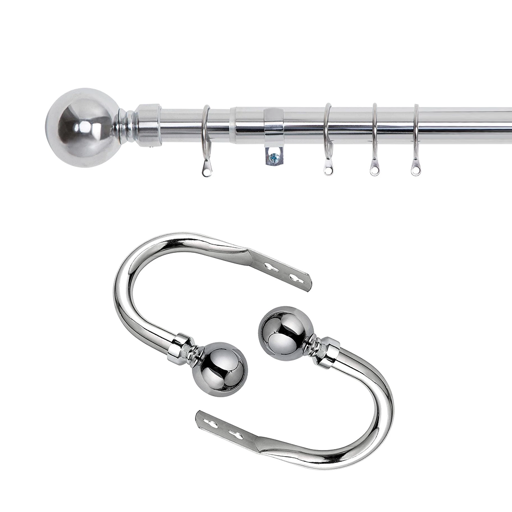 SKU: 8261431361570-chrome-extendable-plain-metal-ball-finials-curtain-pole-set