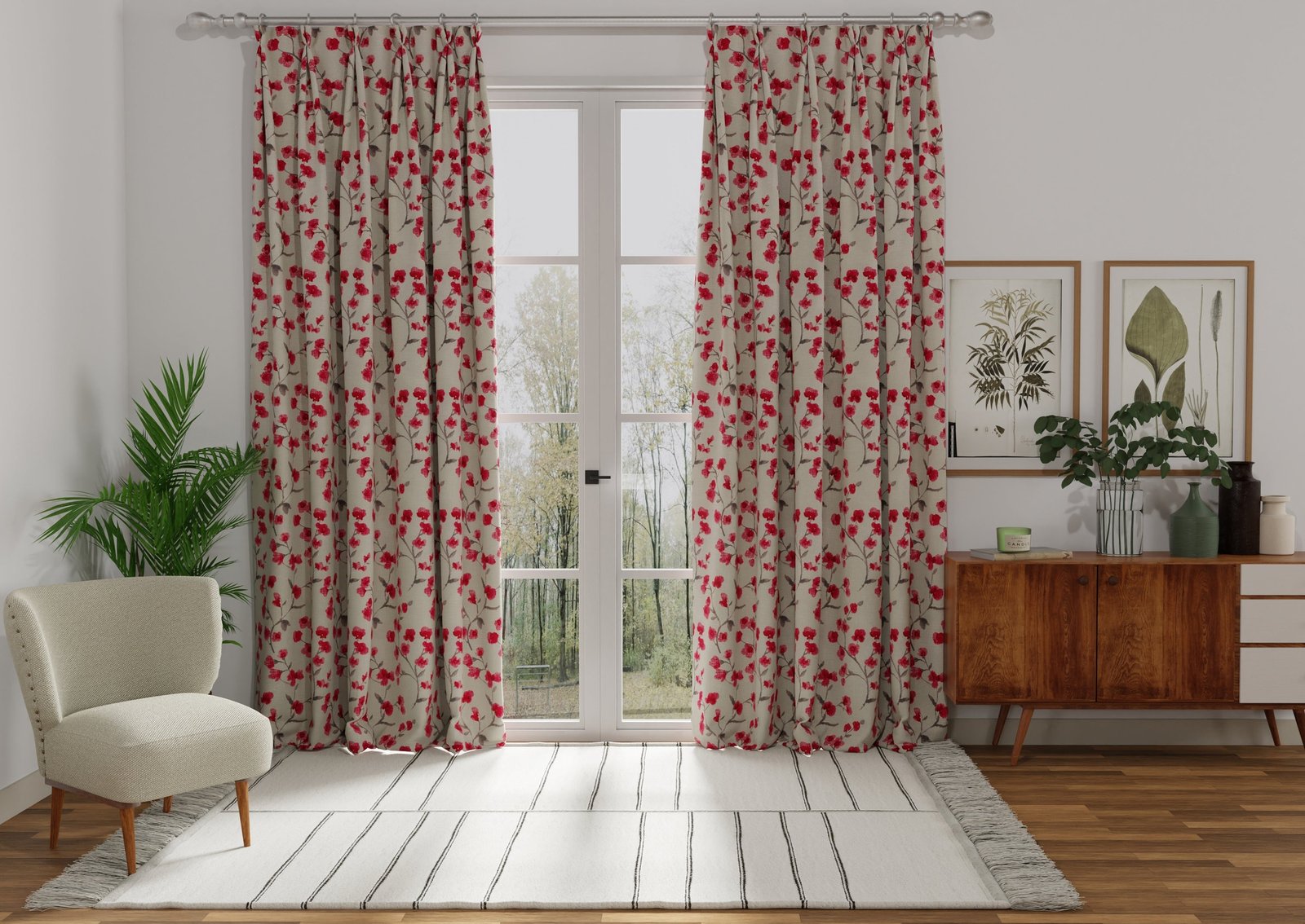 This material is now available to order as made to measure roman blinds, fully lined curtains, and accessories.