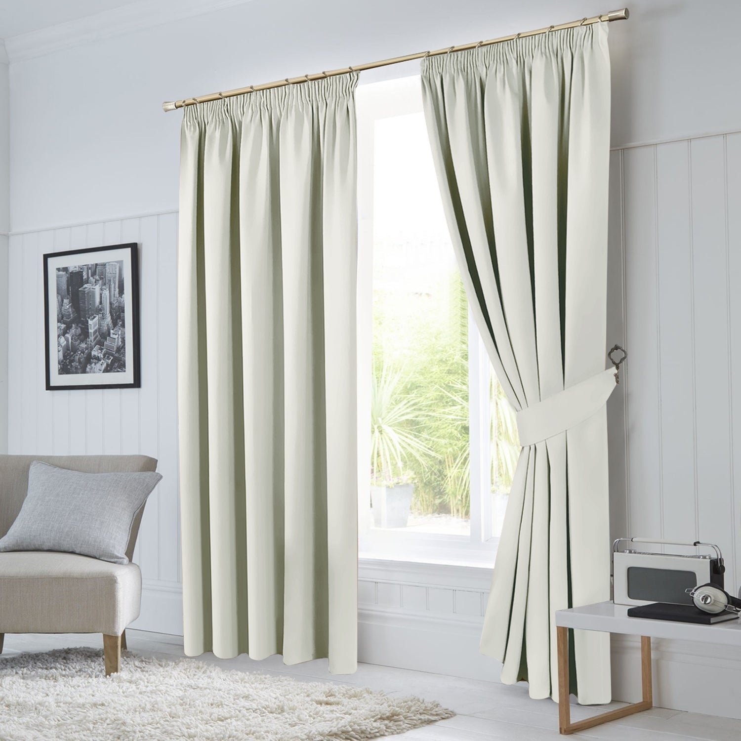 Cream Pencil Pleat Curtains Thermal Blackout