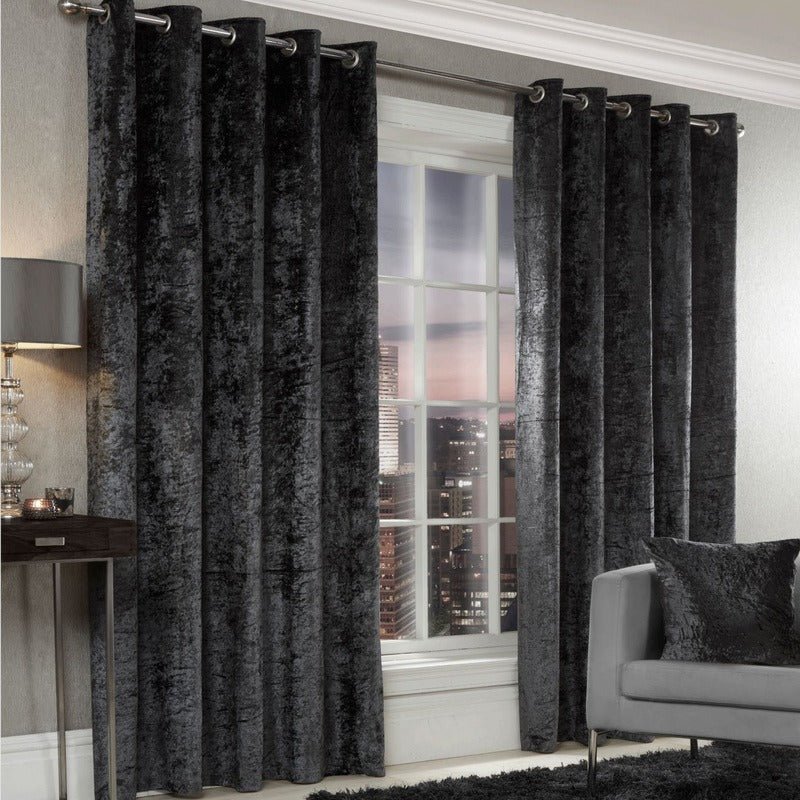 Crushed Velvet Ready Made Eyelet Curtains Charcoal