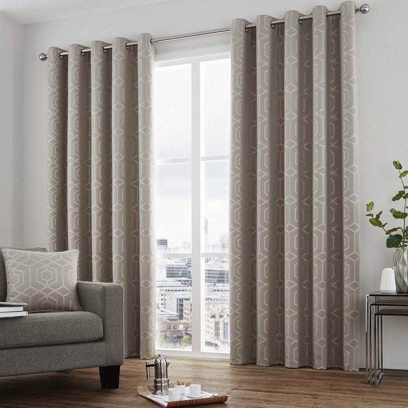 Curtina Camberwell Lined Ready Made Eyelet Curtains Stone