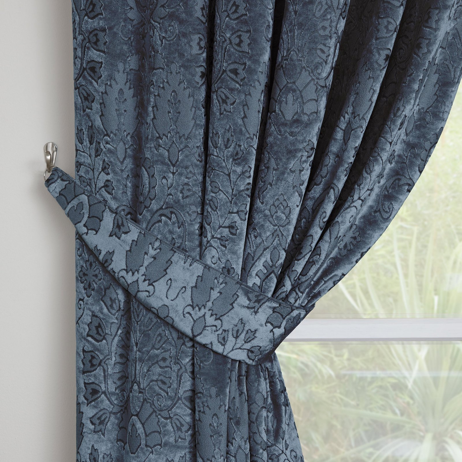 Experience the sensational effect of the sumptuously soft velvet fabric with a beautifully designed damask pattern woven into this stunning curtain from Curtina. Expertly lined to block out light and retain heat, complete with a 3″ pencil pleat heading tape.