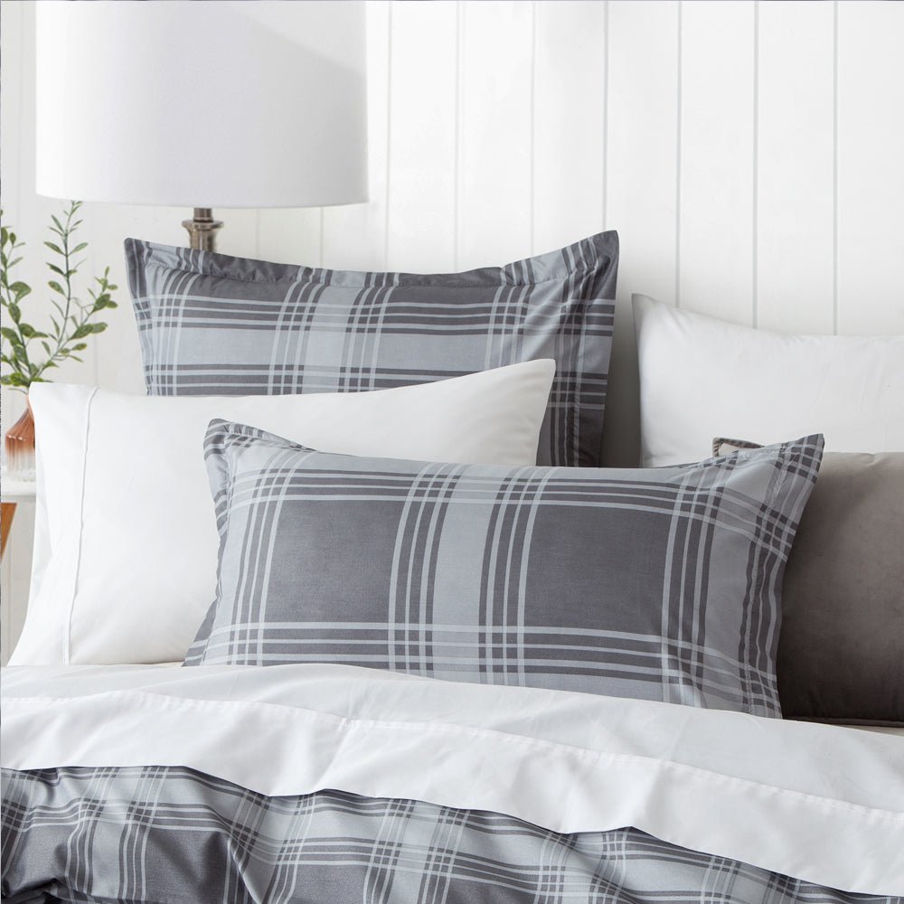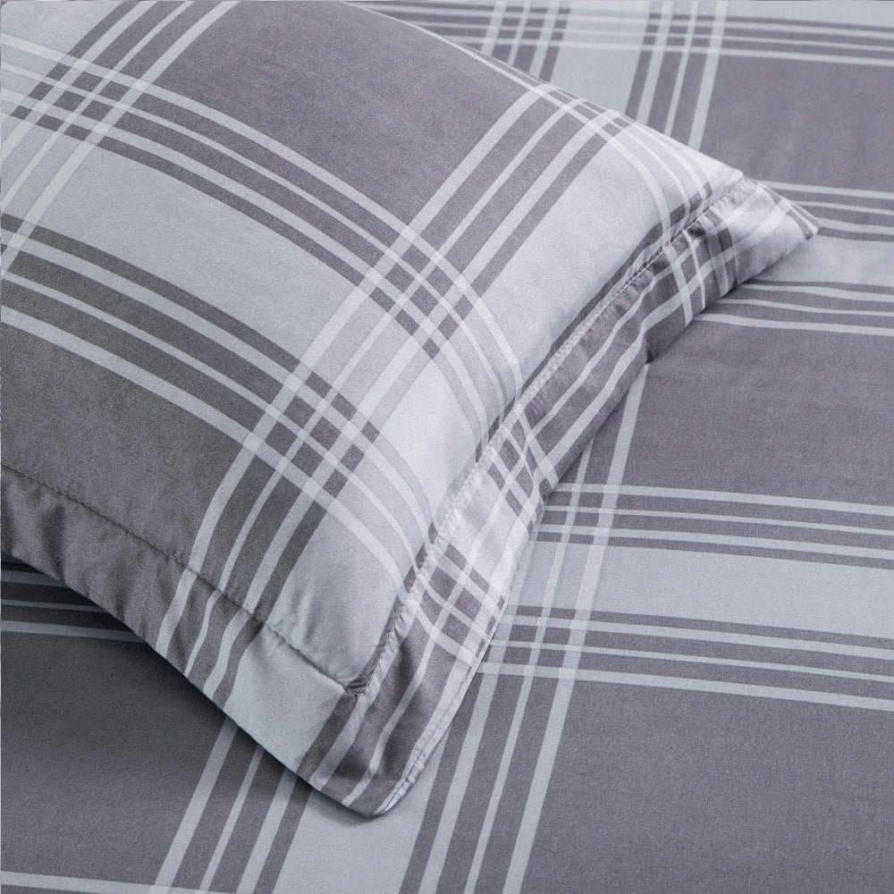Double Bedding Check Printed Duvet Cover Set Grey