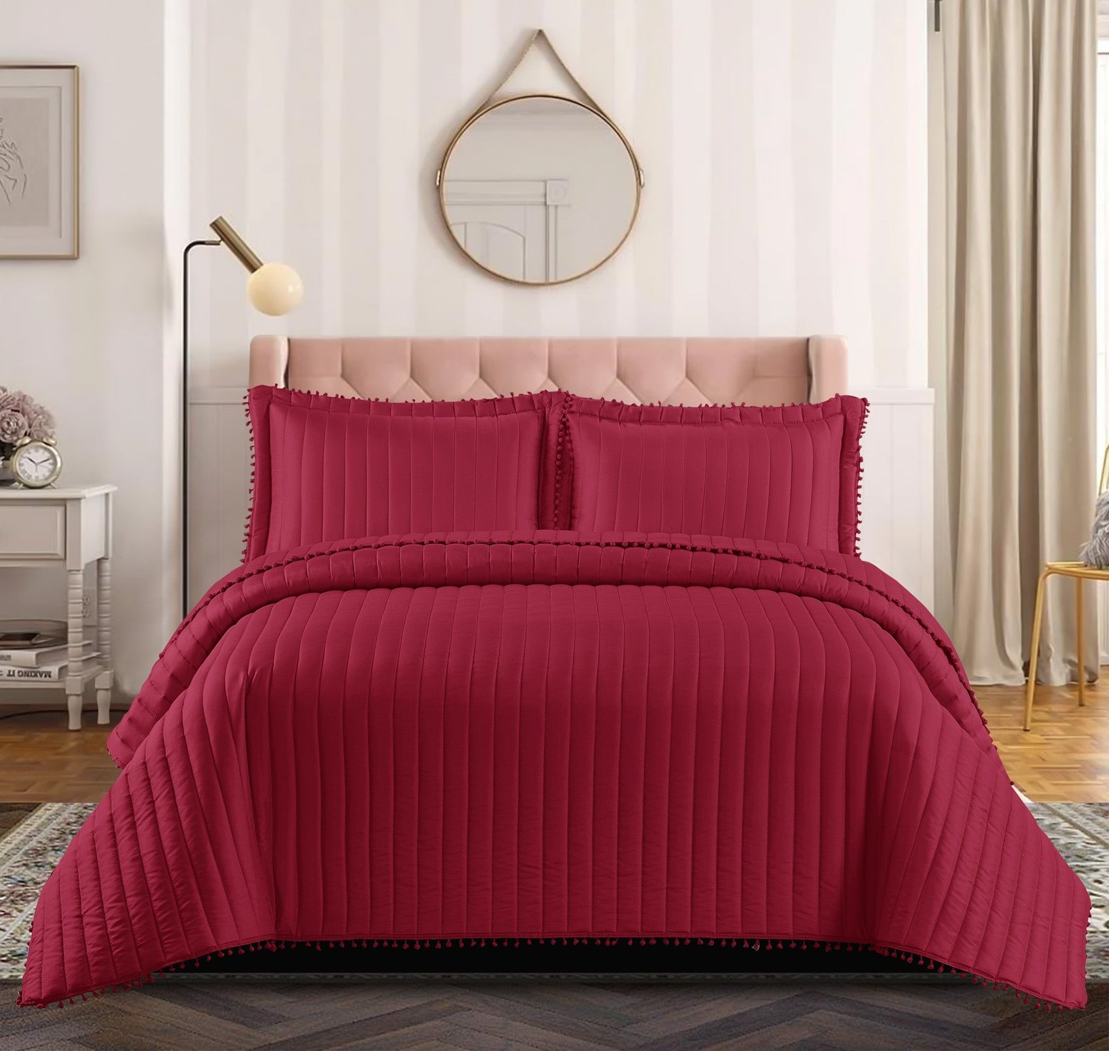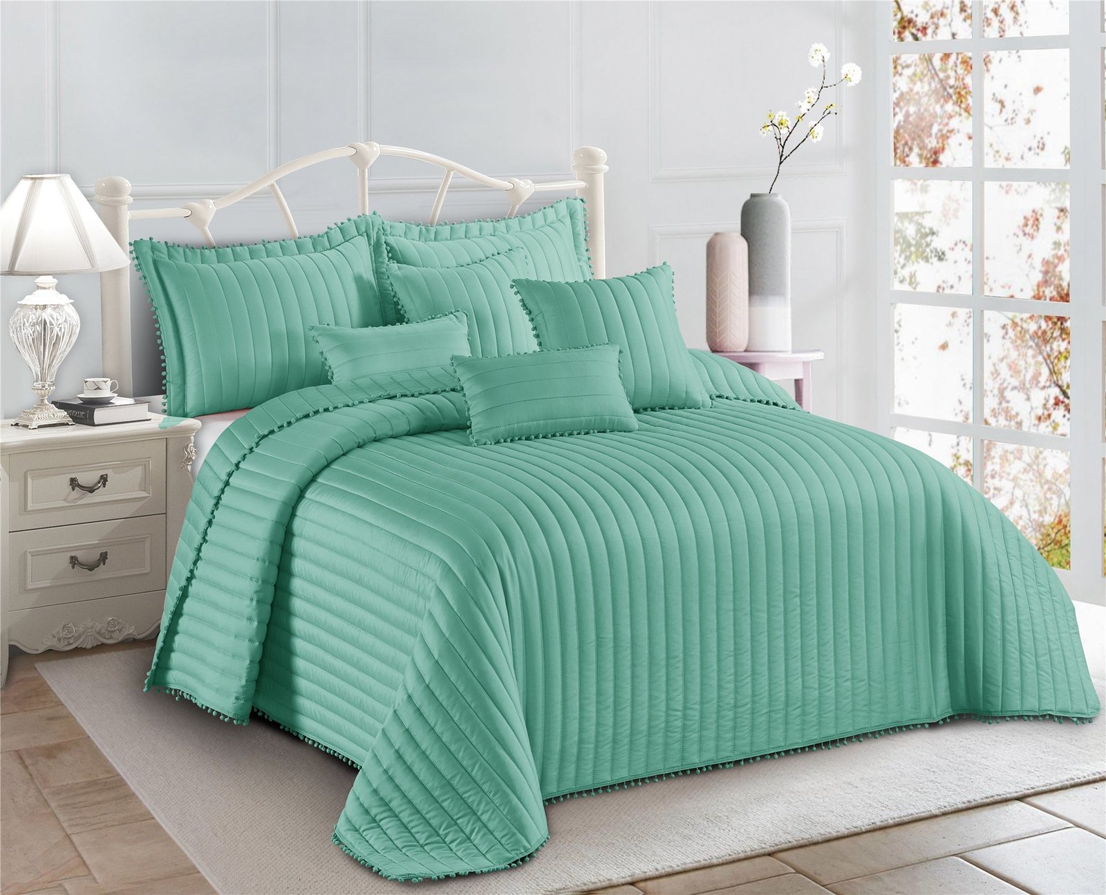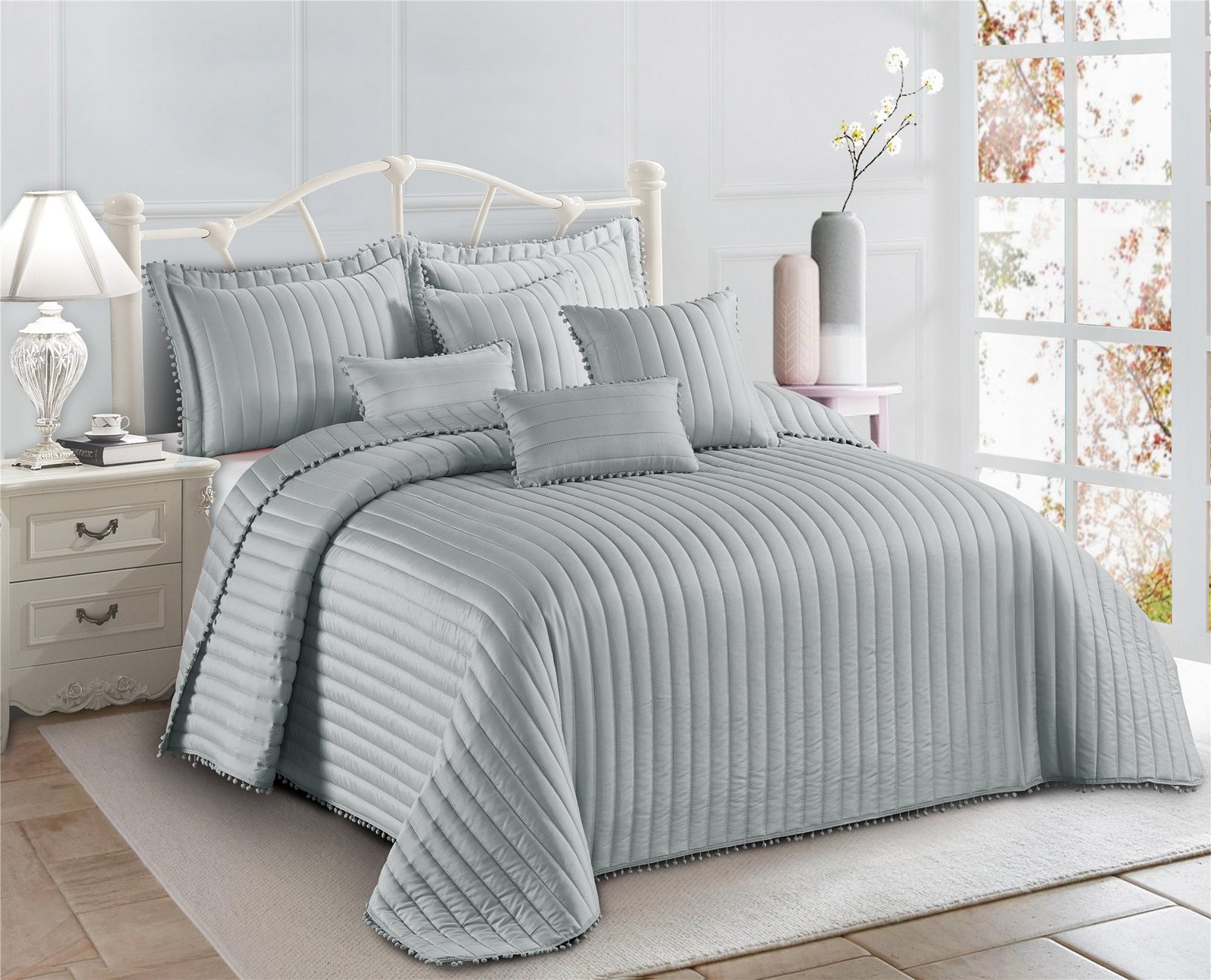 SKU: 8261438930978-embossed-quilted-pom-pom-bedspread-comforter-with-pillow-case Categories: , ,