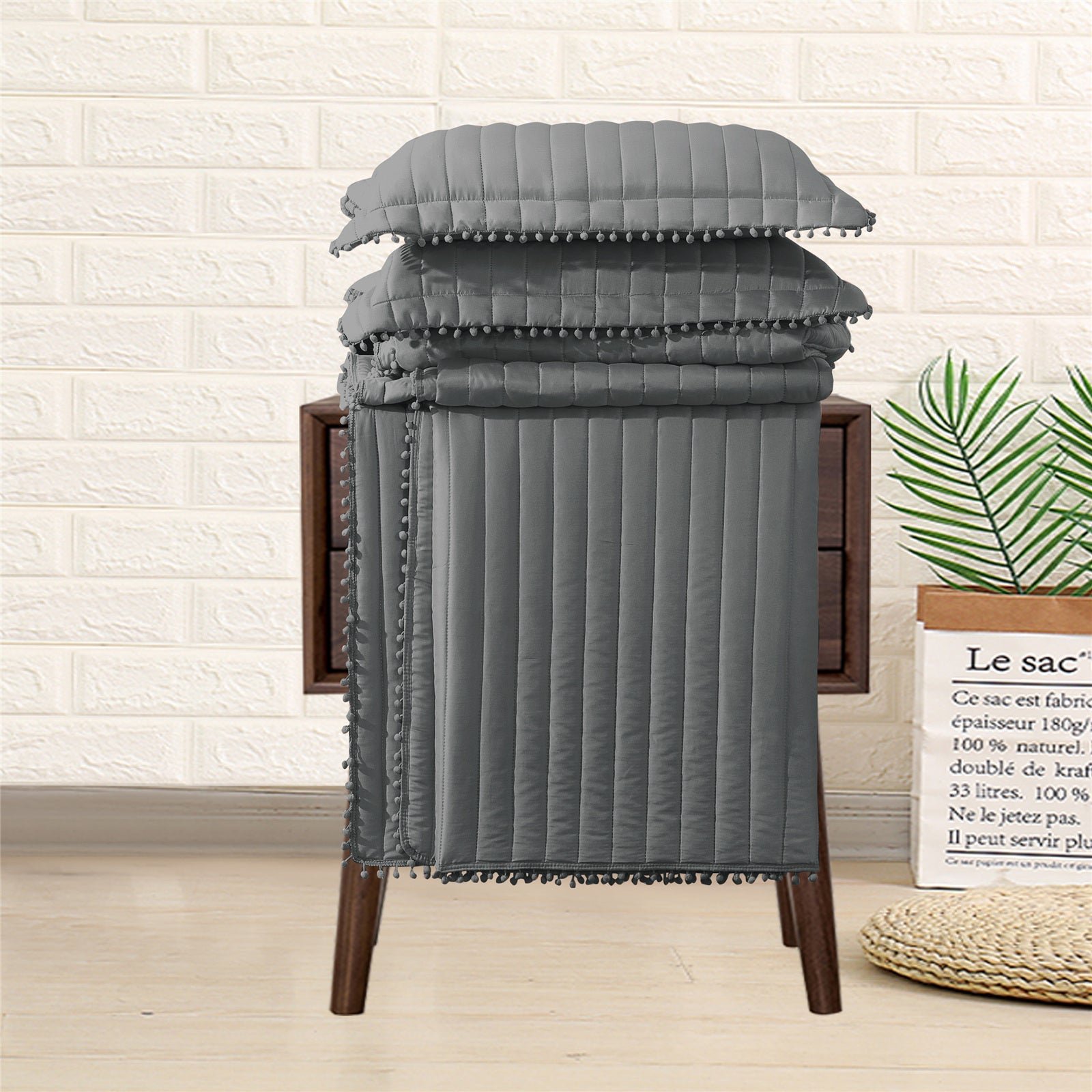 Embossed Quilted Pom Pom Bedspread Comforter with Pillow Case