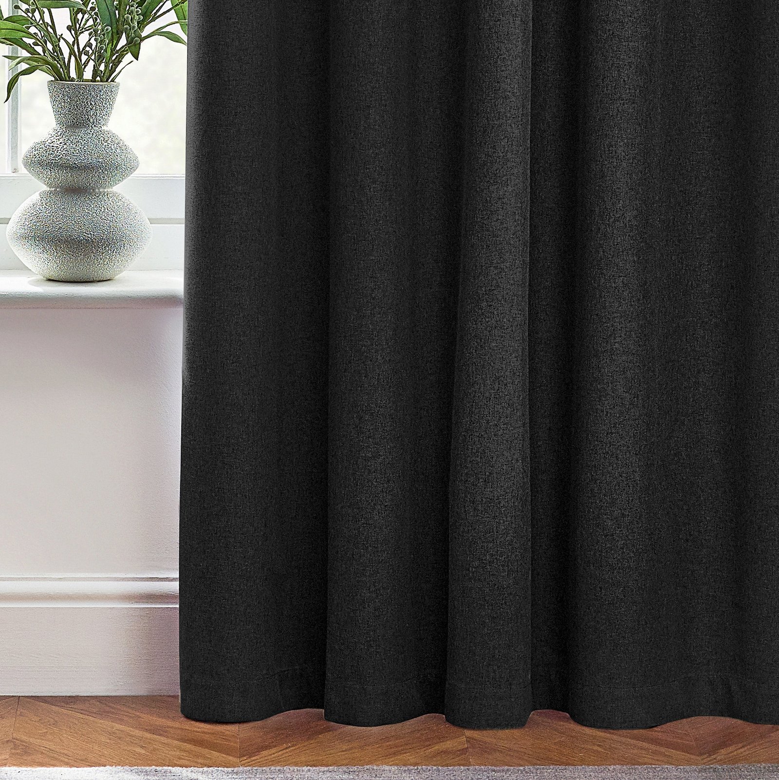 Elevate your living space with the timeless appeal and practical features of our Furn. Dawn Textured Ready Made Eyelet Blackout Curtains Black. Made with soft, textured fabric in a versatile palette, these curtains offer a simple yet stylish look while providing exceptional performance. Designed to keep your home comfortable year-round, they effectively block light, retain heat in winter, and keep interiors cool in summer. Built to last, they are easy to install with sleek eyelets. Perfect for those who appreciate both style and functionality, these curtains add personality and sophistication to any living space without sacrificing comfort or practicality.