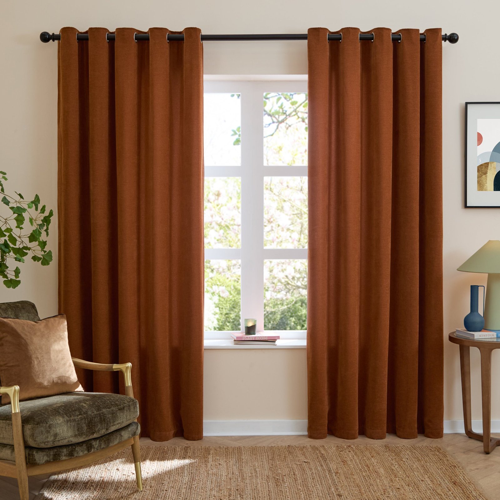 Furn Soft Chenille Ready Made Eyelet Blackout Curtains Rust