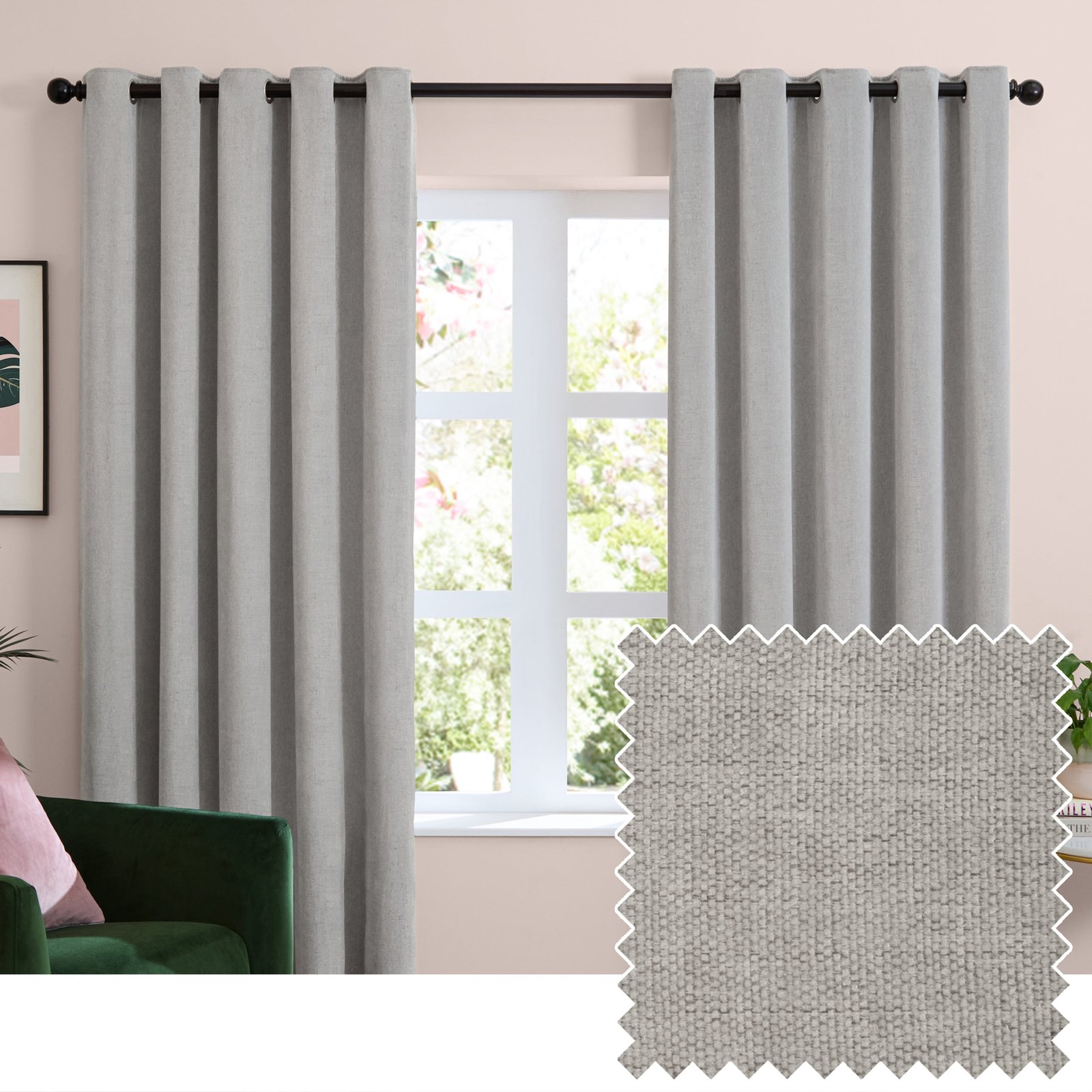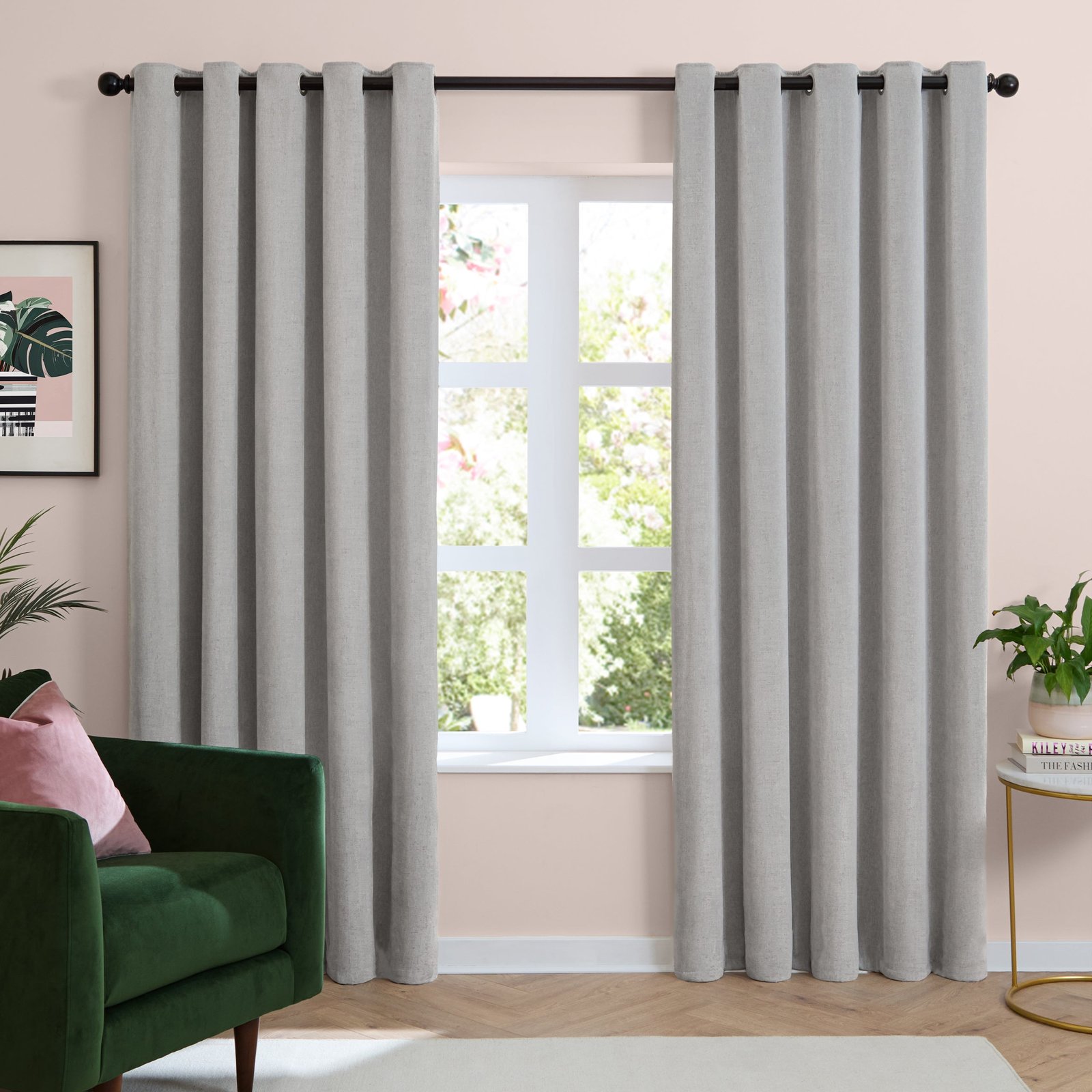Transform your space with these Soft Chenille Ready Made Eyelet Blackout Curtains in Silver. Constructed from luxuriously tactile matte chenille, they deliver sophisticated comfort whilst maintaining an effortlessly elegant aesthetic. The blackout fabric provides effective light control and privacy, establishing a serene environment ideal for bedrooms and living spaces. Their superior drape and durable construction ensure a refined appearance that withstands daily use. Pre-fitted eyelets offer straightforward installation, allowing you to achieve a polished, contemporary look without compromise. Perfect for those seeking both tactile indulgence and practical performance in their window dressing.