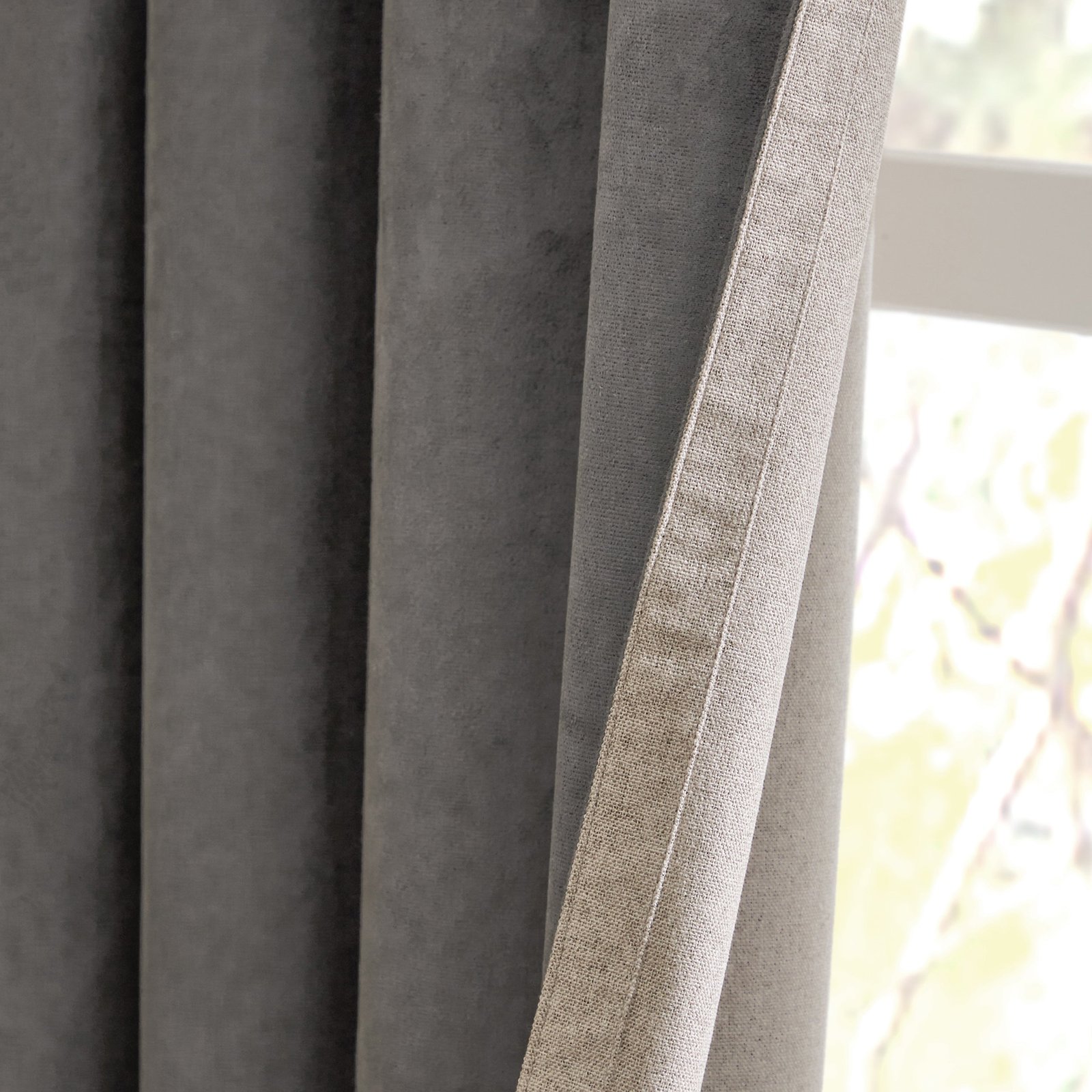 Furn Verso Reversible Suede Look Ready Made Eyelet Blackout Curtains Charcoal