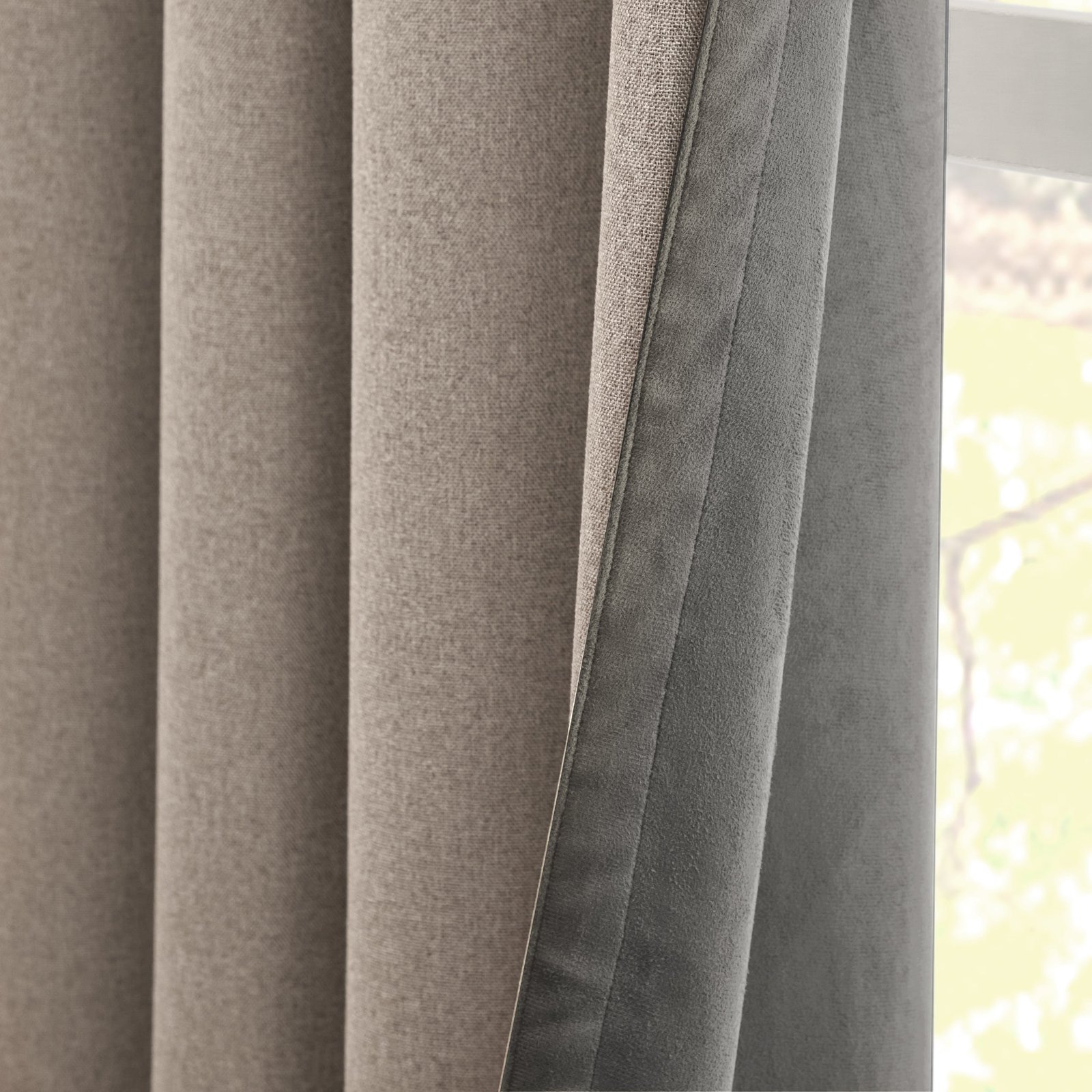 Transform your interior with these versatile Verso Blackout Curtains, engineered for both performance and aesthetic appeal. The reversible construction offers dual styling options—a refined suede-look finish paired with a contemporary linen-look reverse—allowing you to adapt your décor effortlessly. Superior blackout technology effectively eliminates external light, fostering an ideal environment for undisturbed sleep or peaceful relaxation. Built from robust, long-wearing fabric, these ready-made eyelet curtains combine practical light control with enduring quality, making them an intelligent investment for any room seeking a sophisticated, functional window treatment solution.