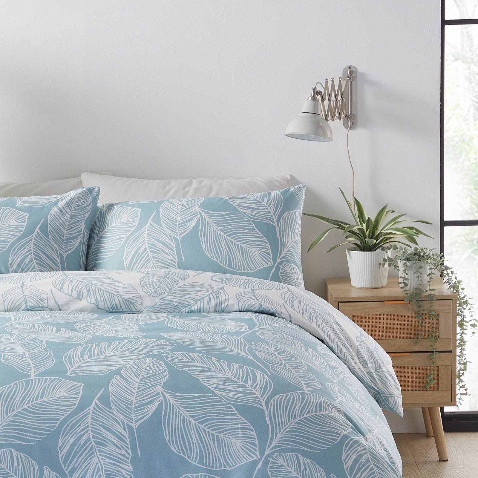 Transform your bedroom into a serene oasis with the sophisticated Matteo botanical duvet set. Featuring a palm leaf pattern, this versatile bedding set is made of durable polycotton and can be flipped over for a unique look.