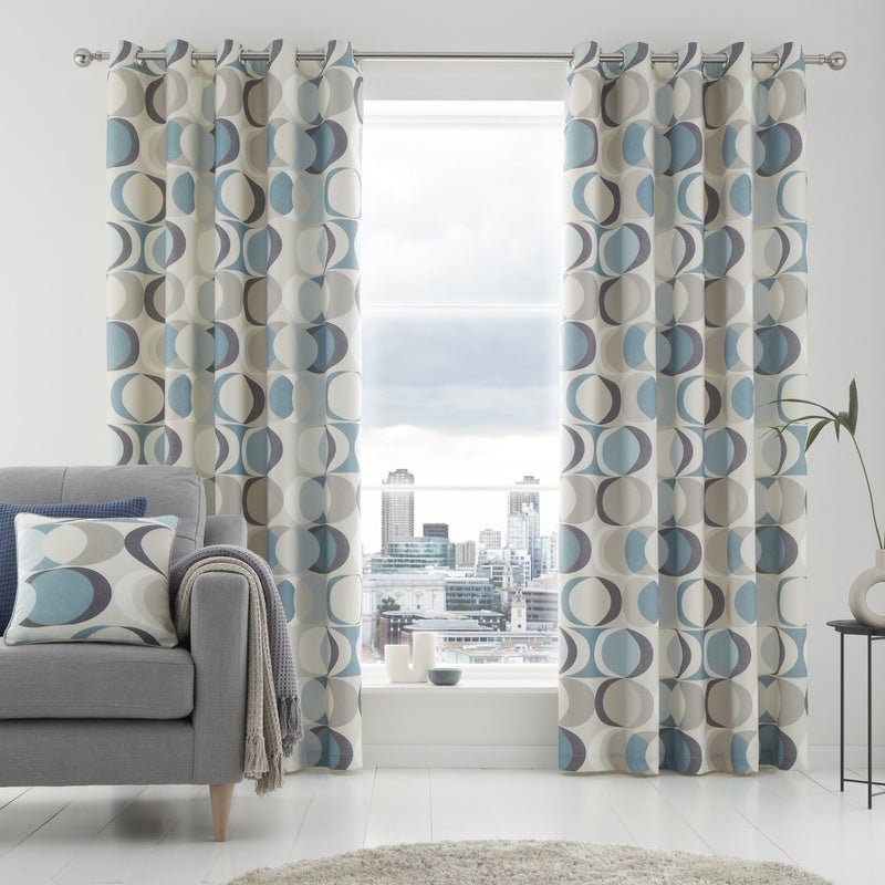Choose the Sander curtains and introduce a blend of geometric circles and tones to your room of choice. This fun screen-print-style design inspired by artwork and fashion of the 50s and 60s. These curtains are manufactured from 100% printed cotton and are fully lined with eyelets for rail hanging