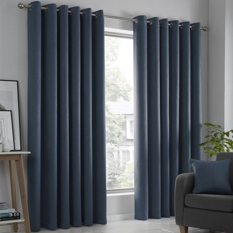 Fusion Strata Woven Dimout Ready Made Eyelet Curtains Navy