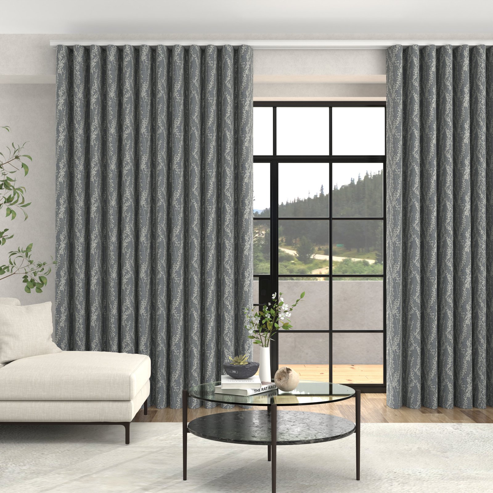 Featuring an intricate floral pattern woven directly into the jacquard material, these curtains bring sophisticated elegance to any interior space. The modern Wave heading delivers a streamlined aesthetic with reduced fabric volume, creating a refined eyelet-style appearance that effortlessly folds back when opened, combining both functionality and contemporary design.Â