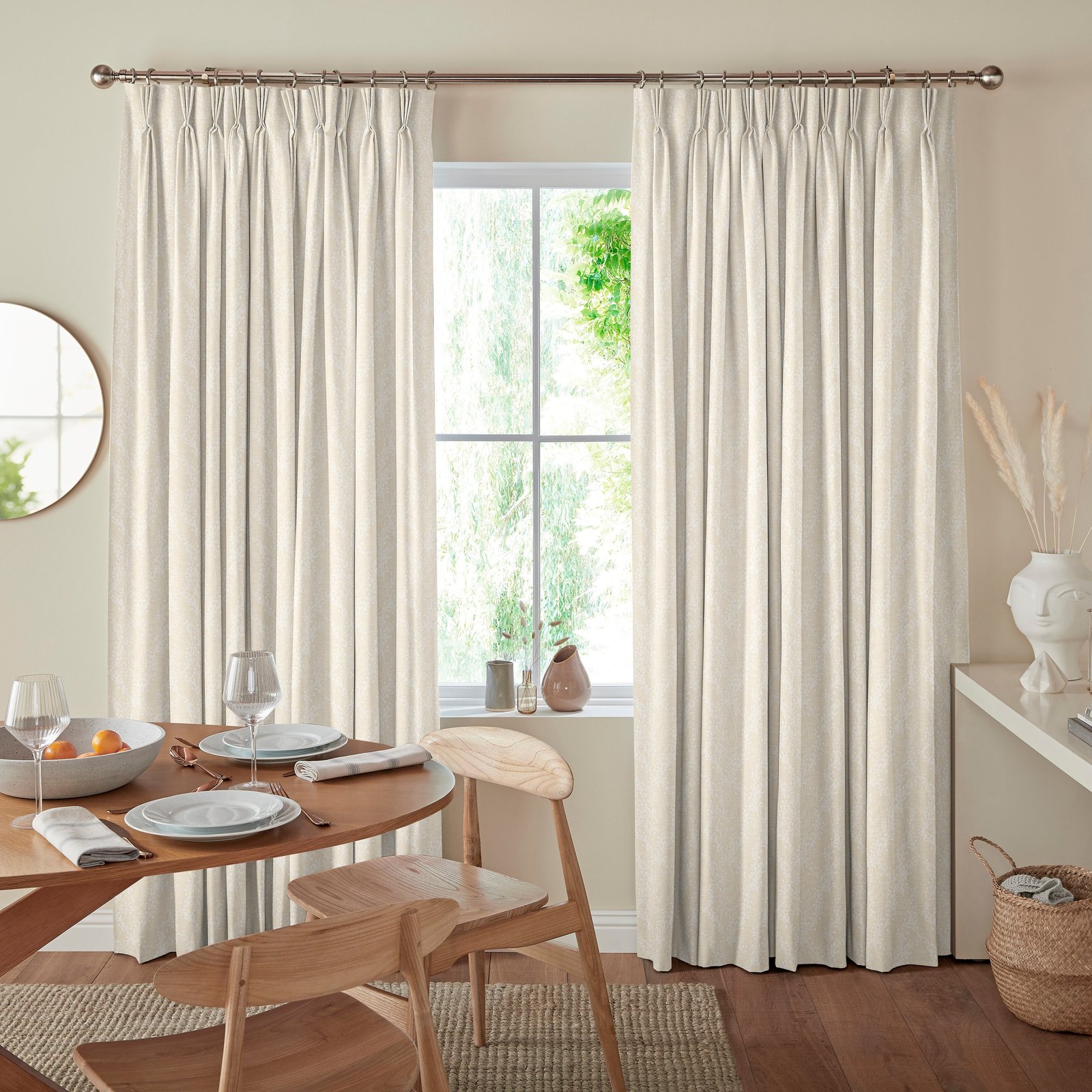 Grace Jacquard Sprig Made To Measure Curtains Snow